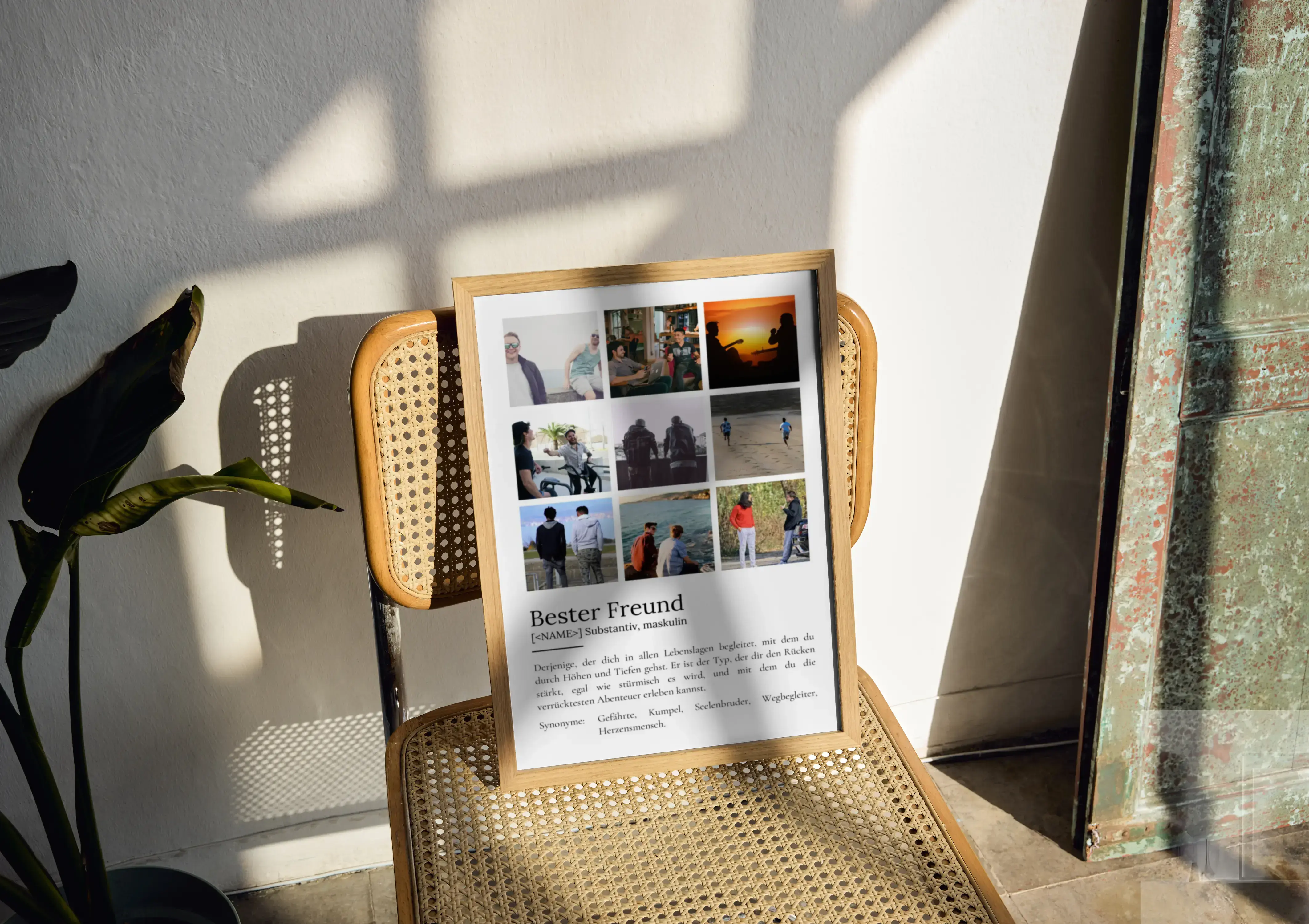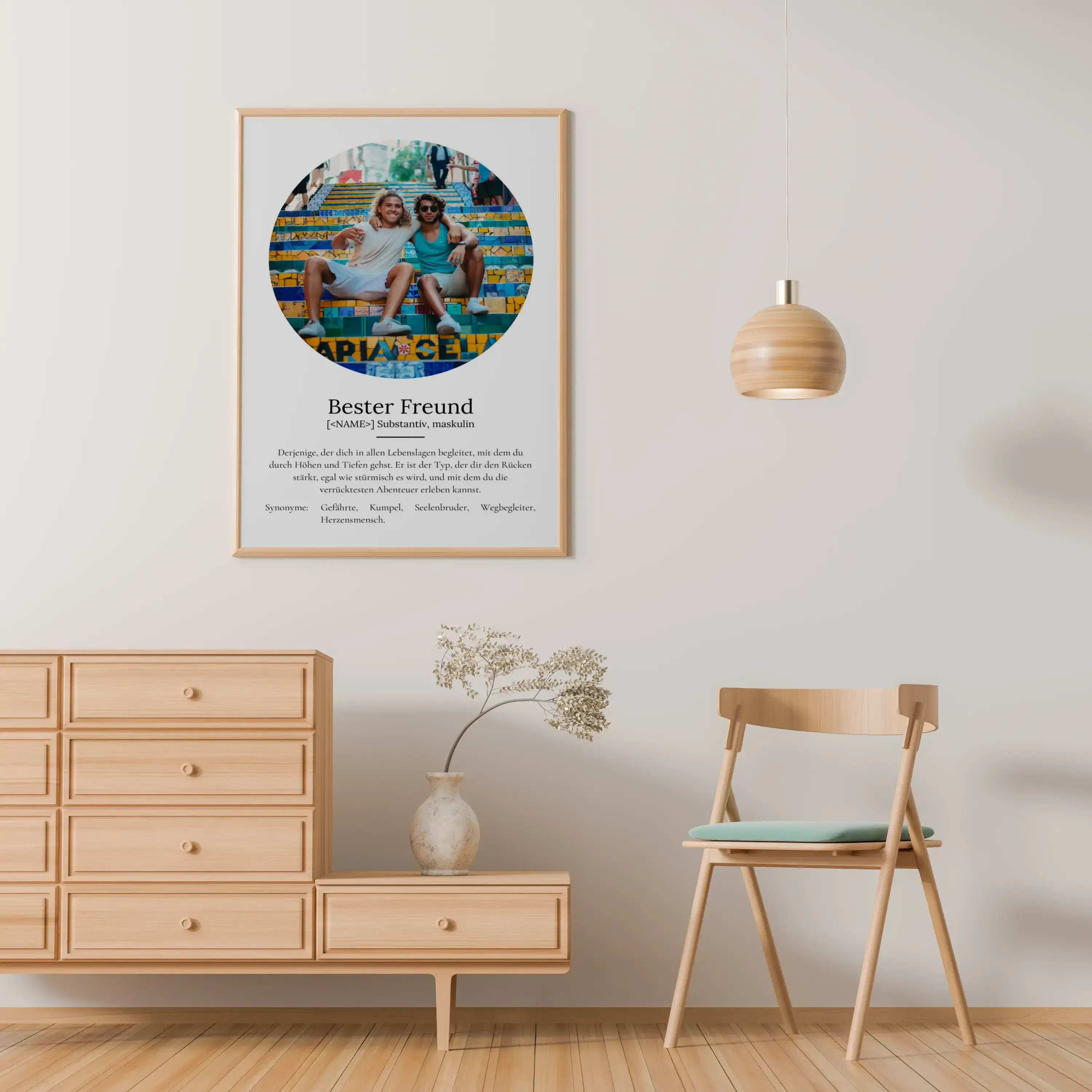 Personalisiertes Definitions-Poster im Duden-Stil für den besten Freund mit eigenem Foto und individuellem Text.