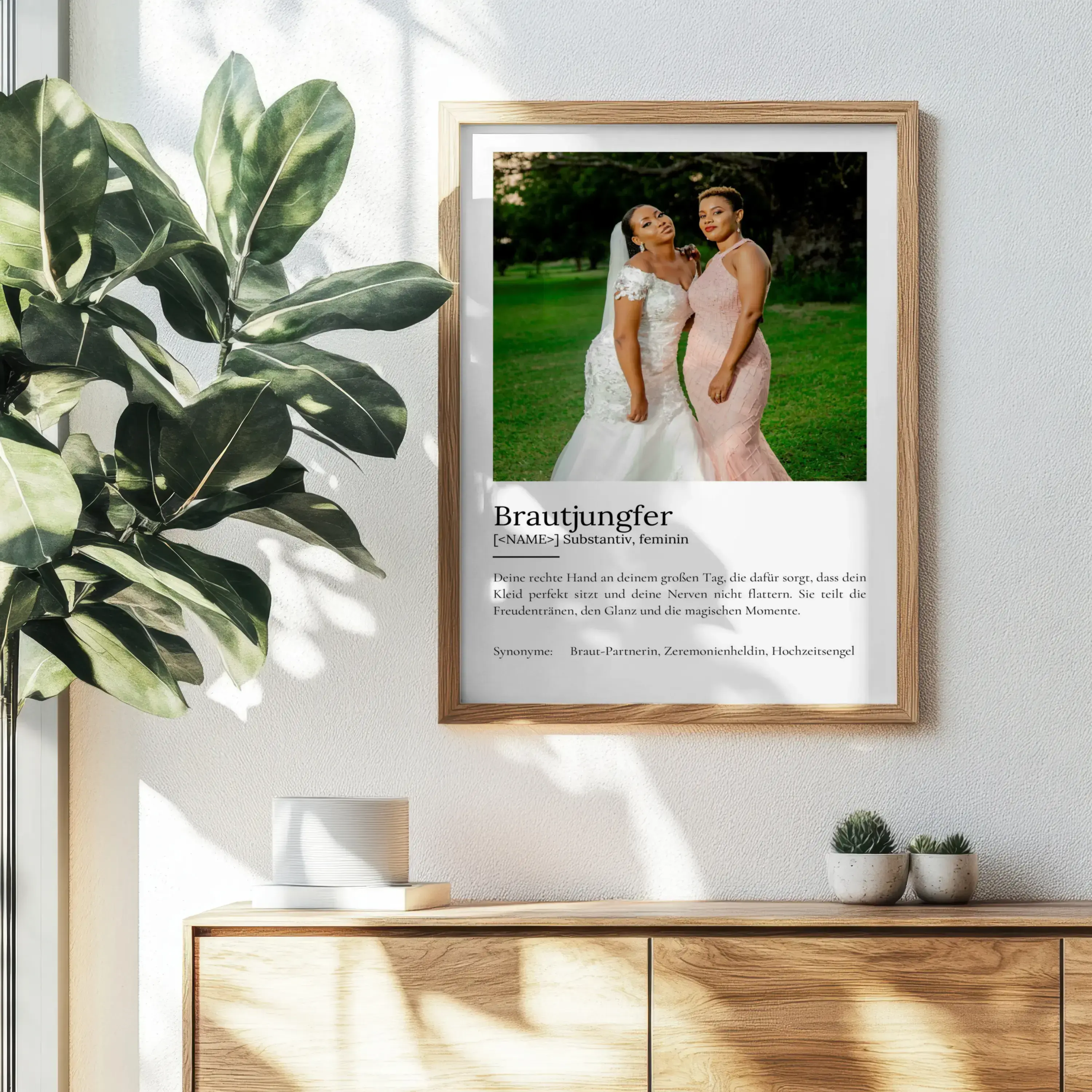 "Brautjungfer" Definition - Geschenk als Poster, Leinwand erstellen. Eigene Fotos und Text.