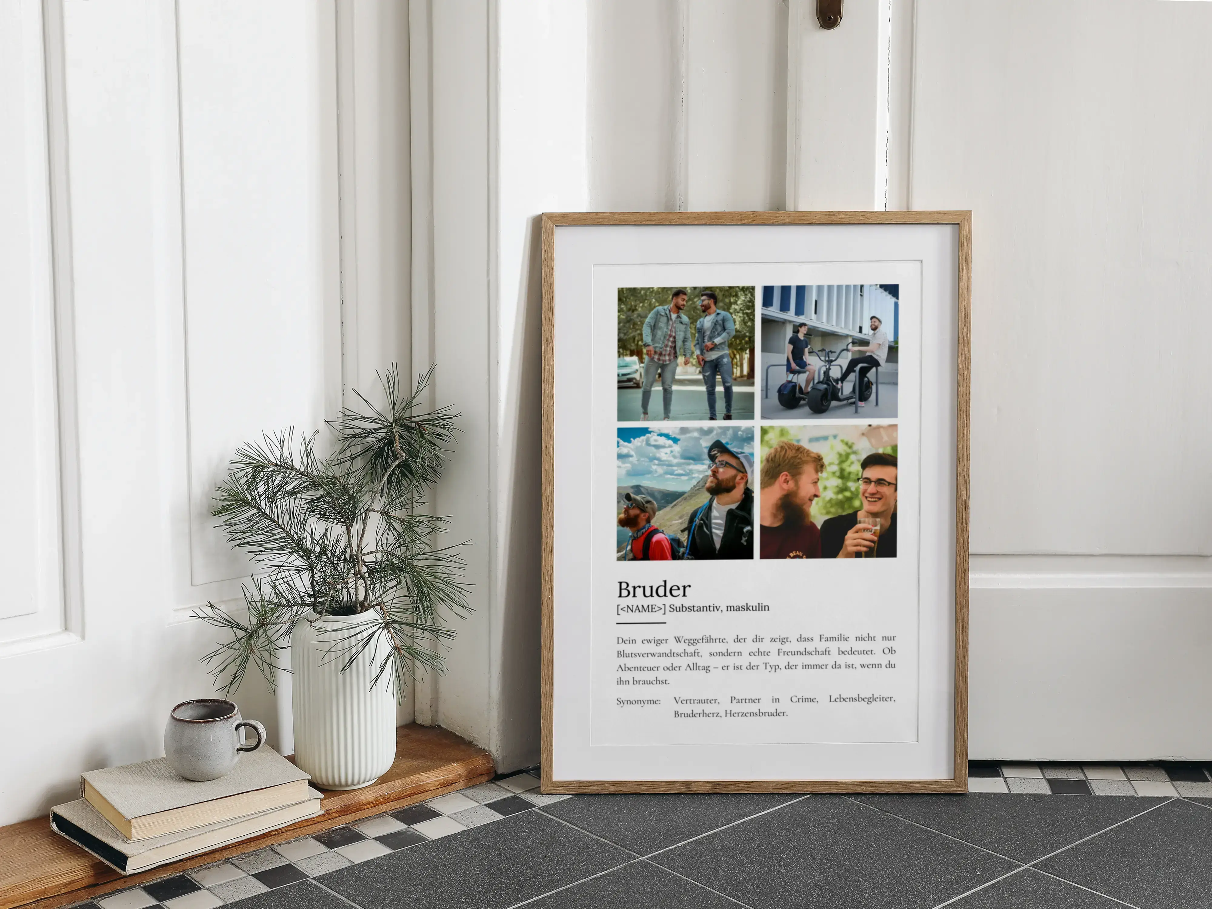 Einzigartiges Definitions-Poster "Bruder": Persönliches Foto und selbst anpassbarer Text im Duden-Stil.