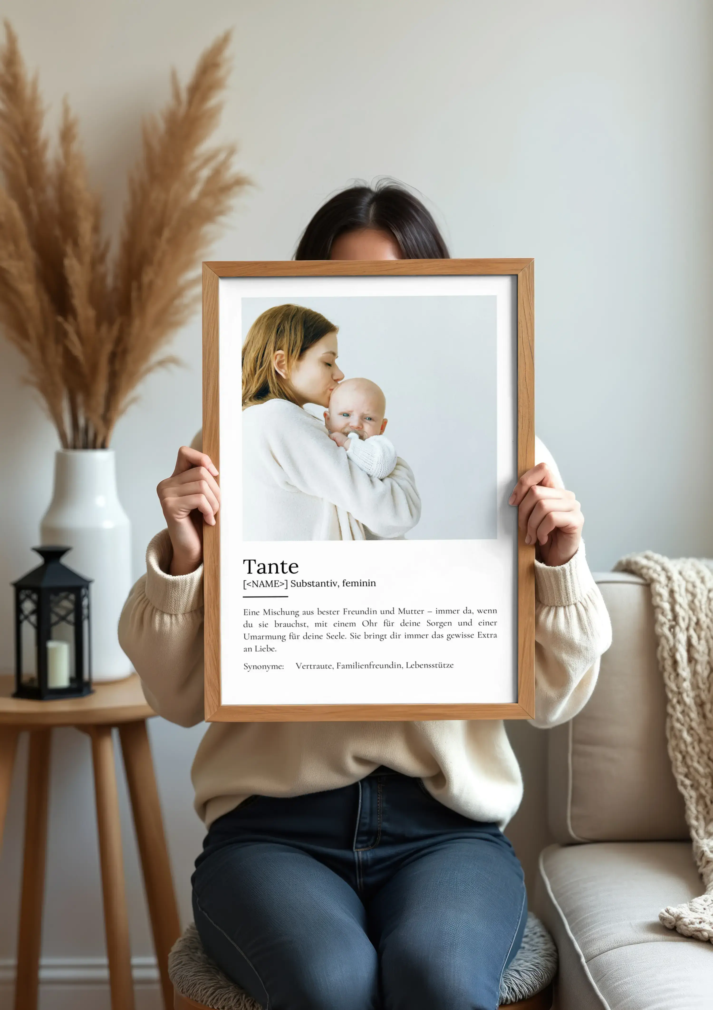 Ein perfektes Geschenk: Personalisierte Definitions-Poster für die beste Tante mit eigenem Foto und Text.