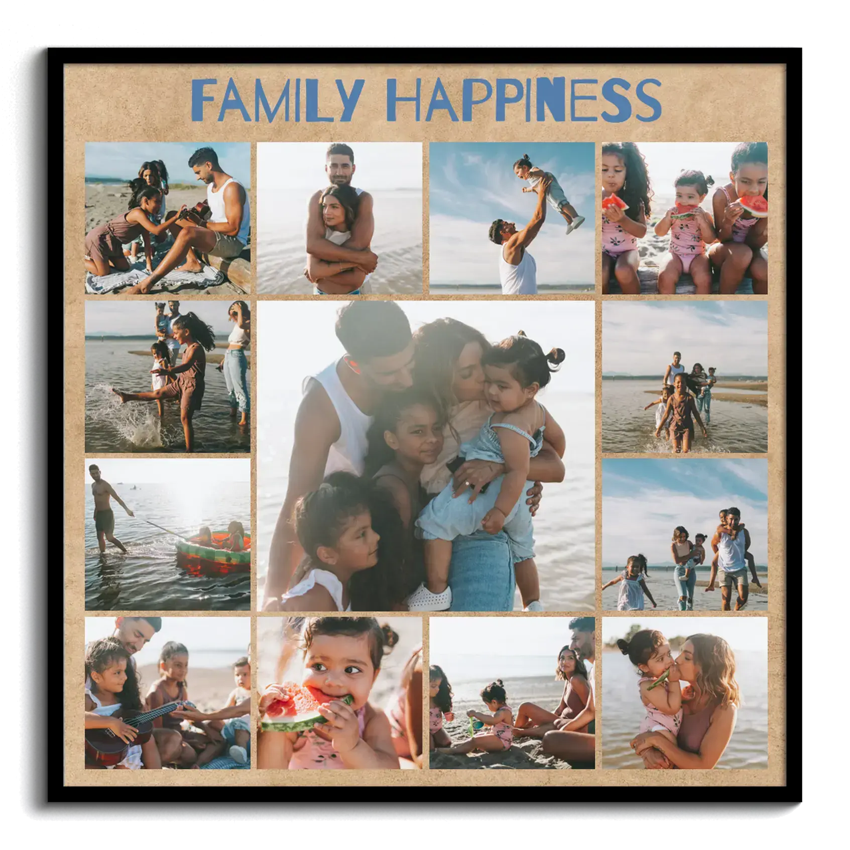 Familienfotos in vielseitigen Collage-Vorlagen mit individuellen Texten wie Family Happiness