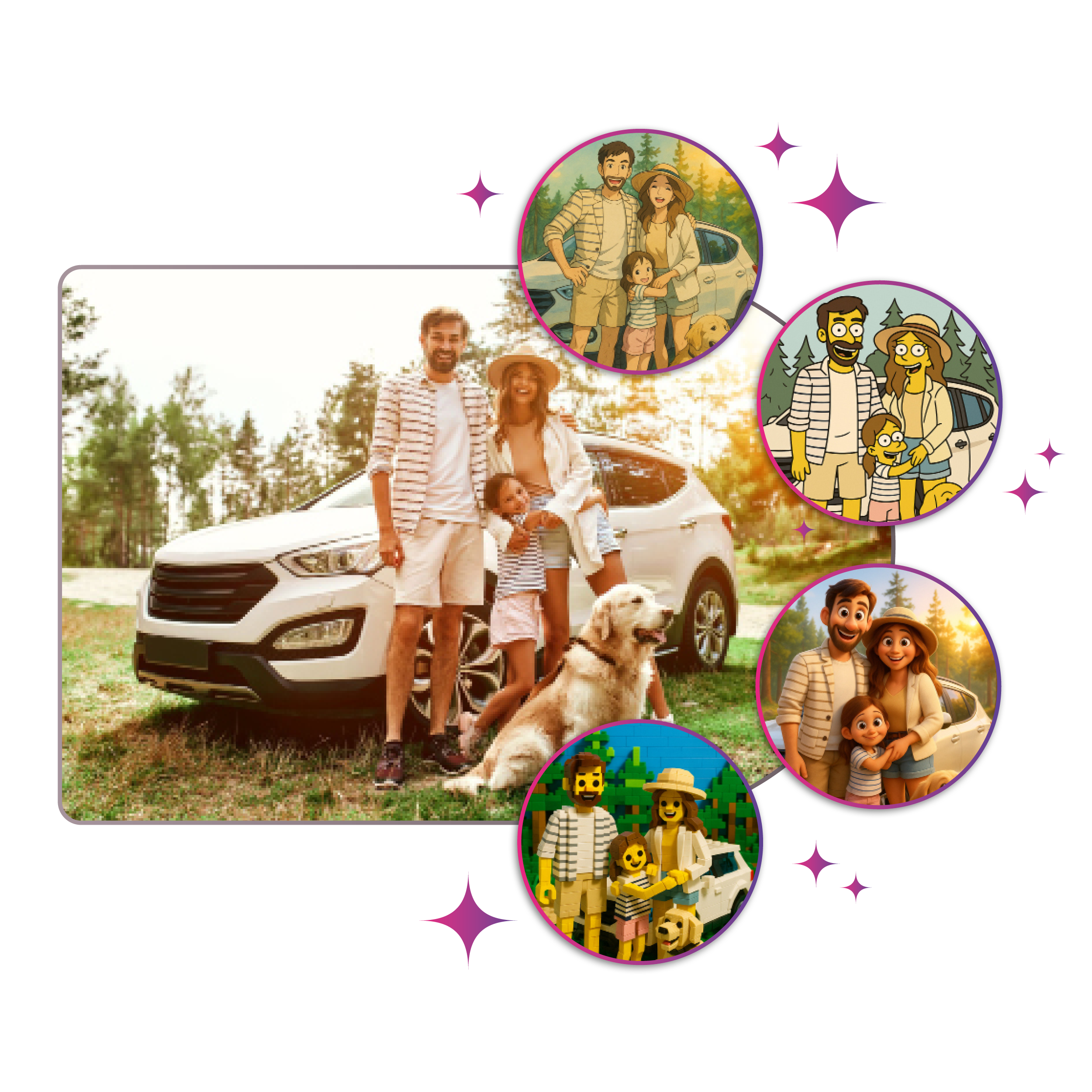 Foto in Anime-Stil umwandeln: Bild hochladen, Stil wählen; auch Pixar, Ghibli, LEGO, Marvel.