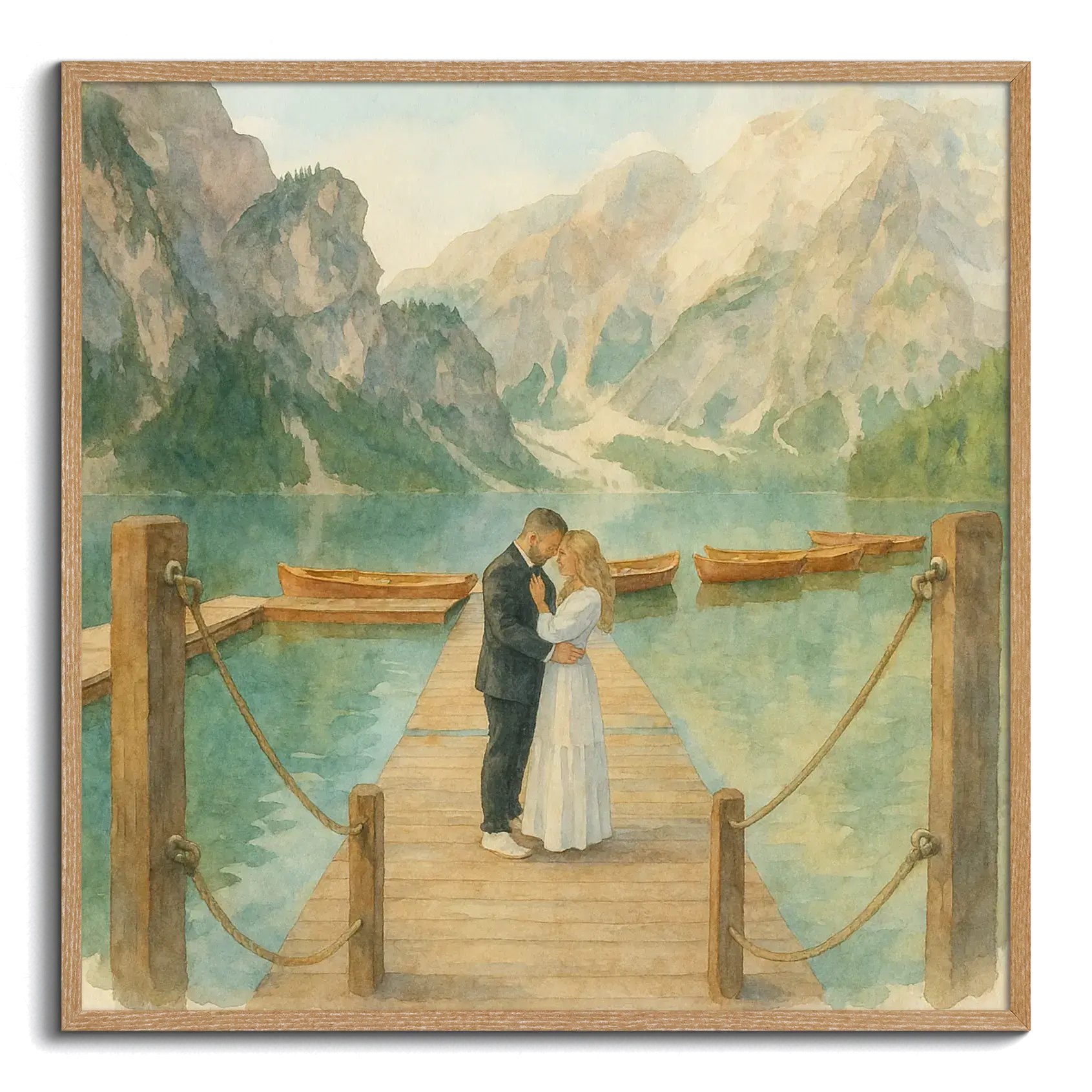 Jetzt dein Foto mit KI umwandeln, gestalten und als Kunstdruck sofort bestellen. Im Beispiel siehst du ein Aquarell: Ein Originalfoto wurde per KI in eine zarte Wasserfarben‑Illustration verwandelt, mit weichen Pinselverläufen, feiner Papierstruktur und harmonischen Pastelltönen. Ideal als Solomotiv oder als Highlight in deiner Collage.