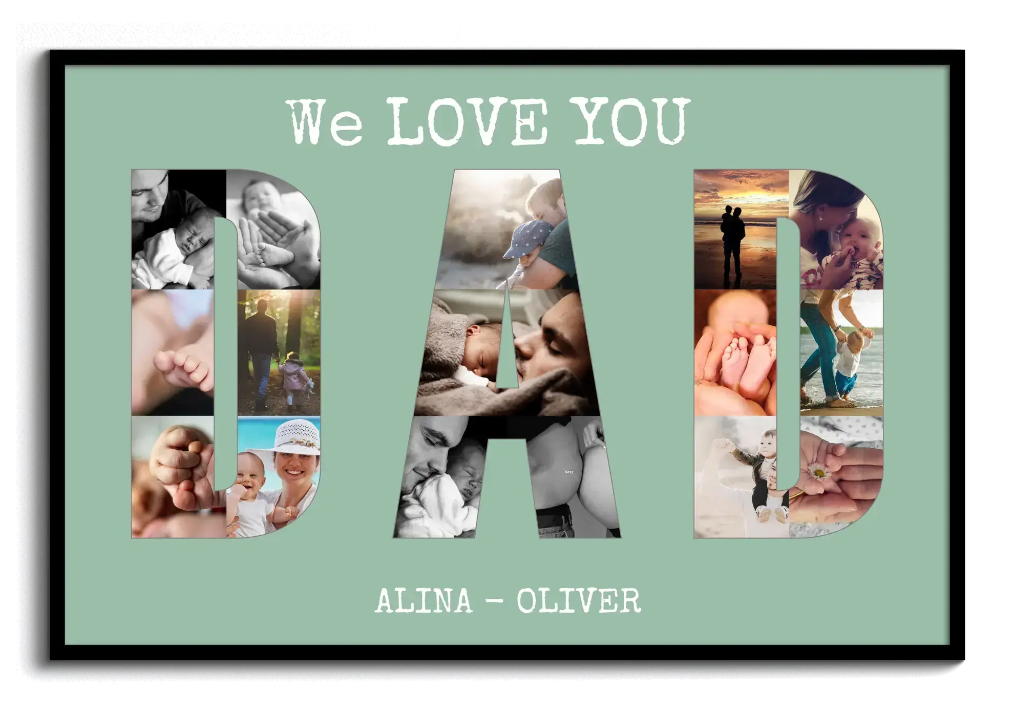 Verleiht Erinnerungen besonderen Ausdruck: Fotocollage "We LOVE YOU DAD" mit individuellen Namen.