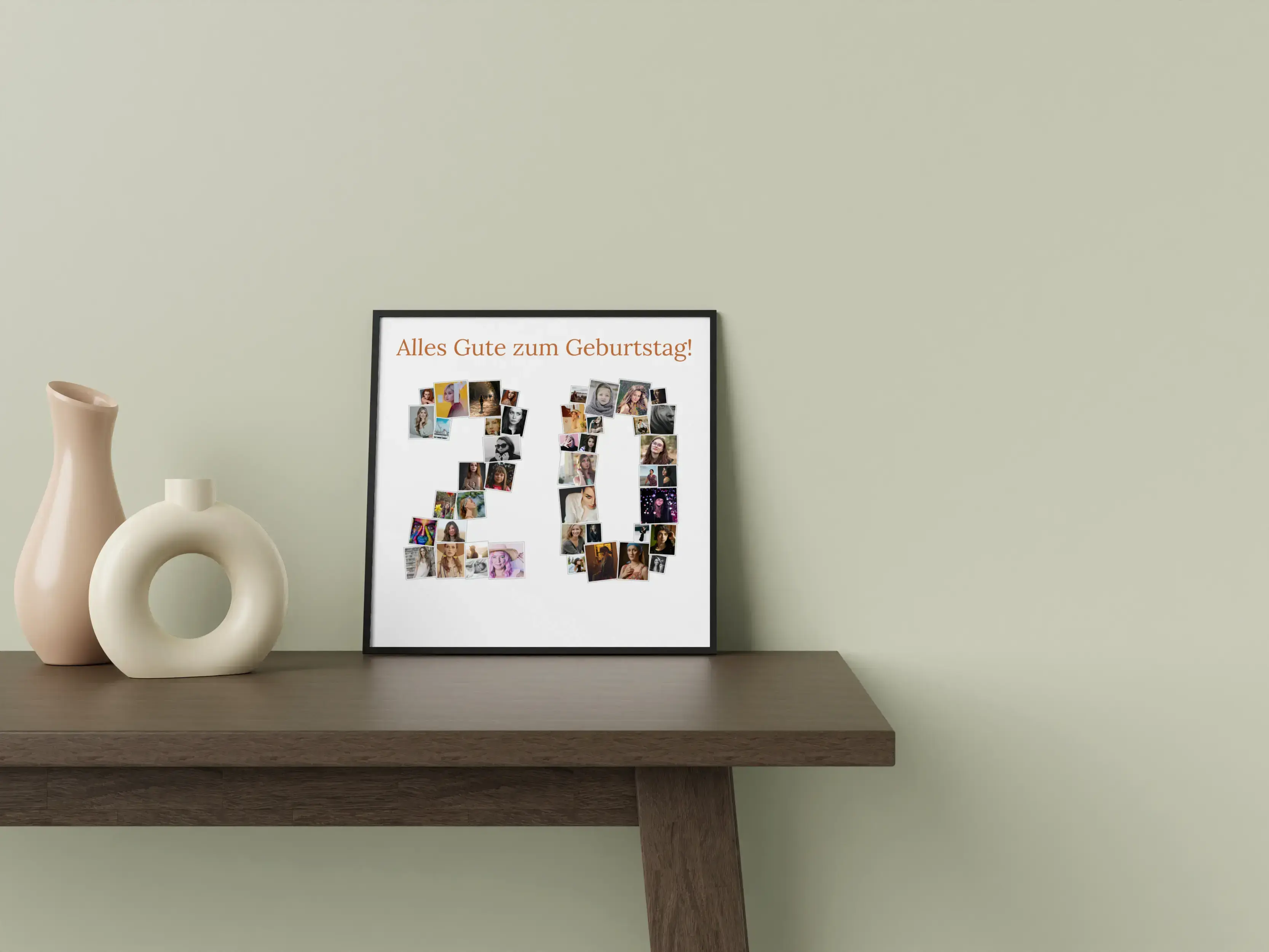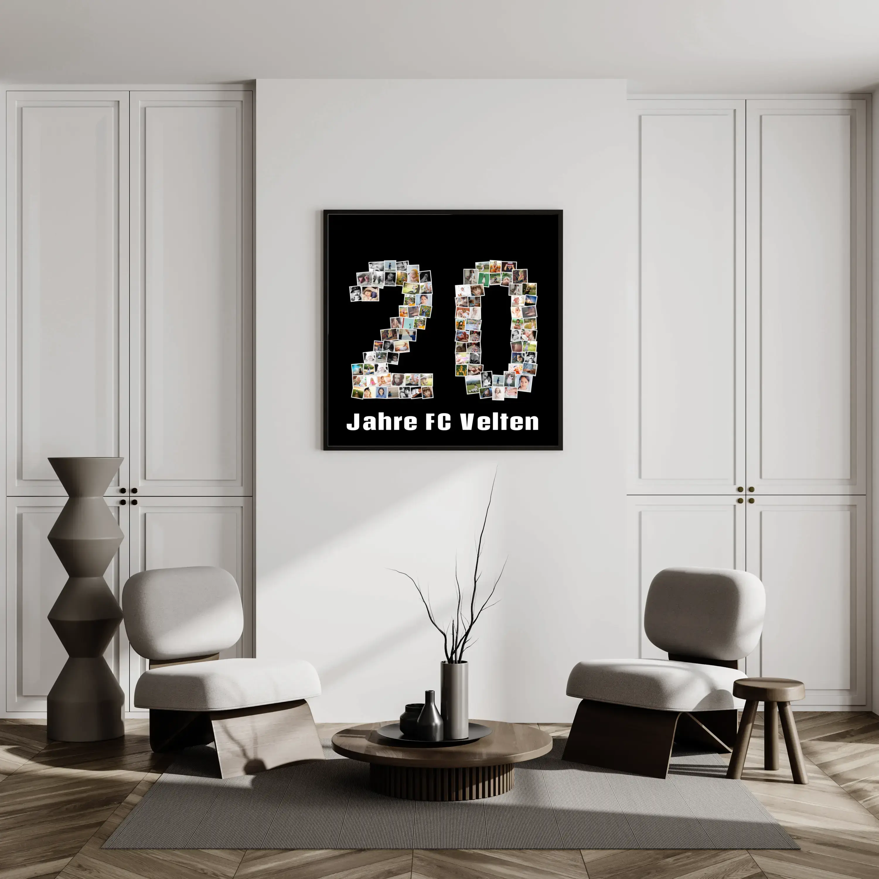 Kreiere jetzt Deine ganz persönliche Fotocollage. Stelle Dir vor, all Deine Lieblingsbilder vereint in der Form einer '20' - ein Unikat, das Deine Erinnerungen lebendig werden lässt.