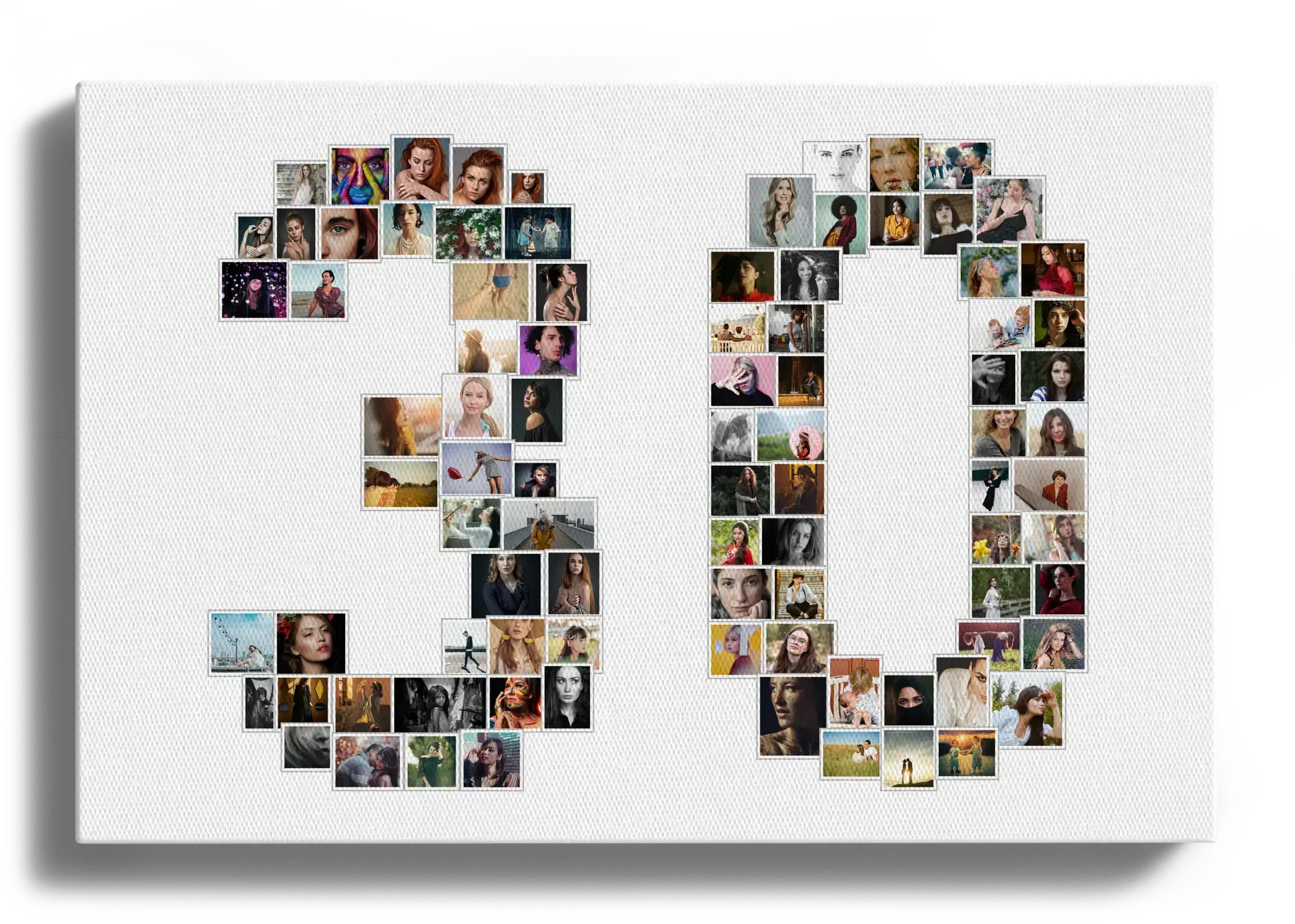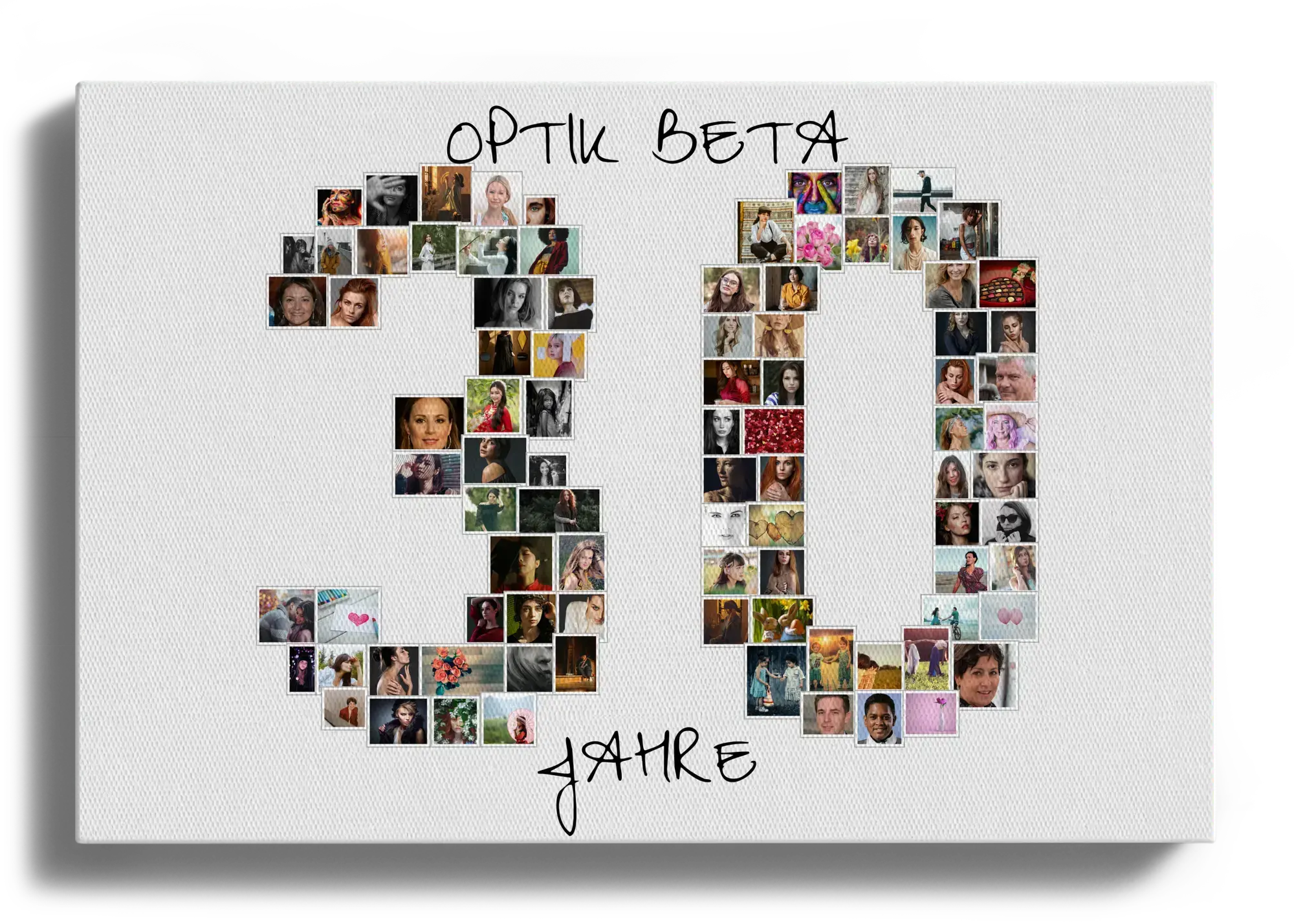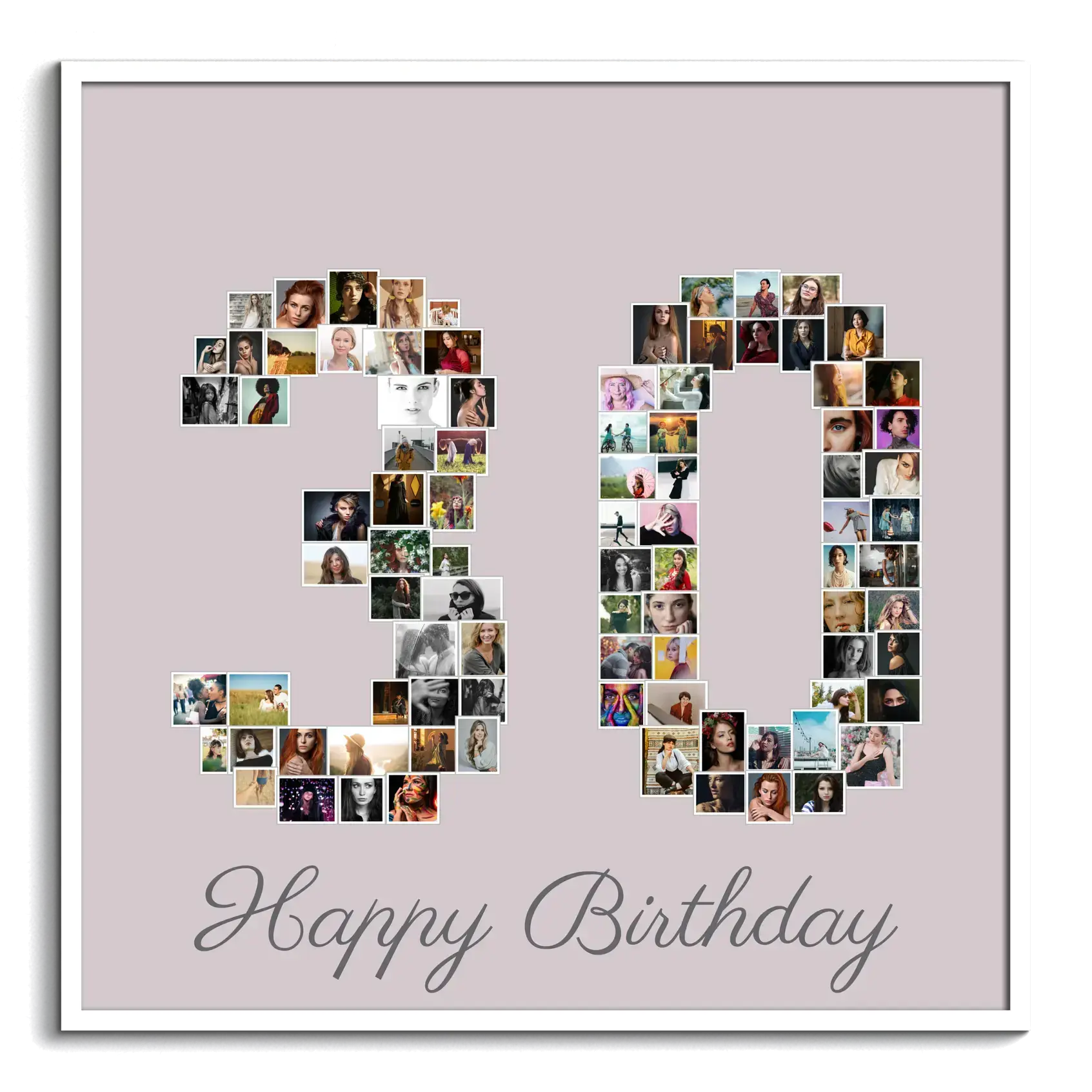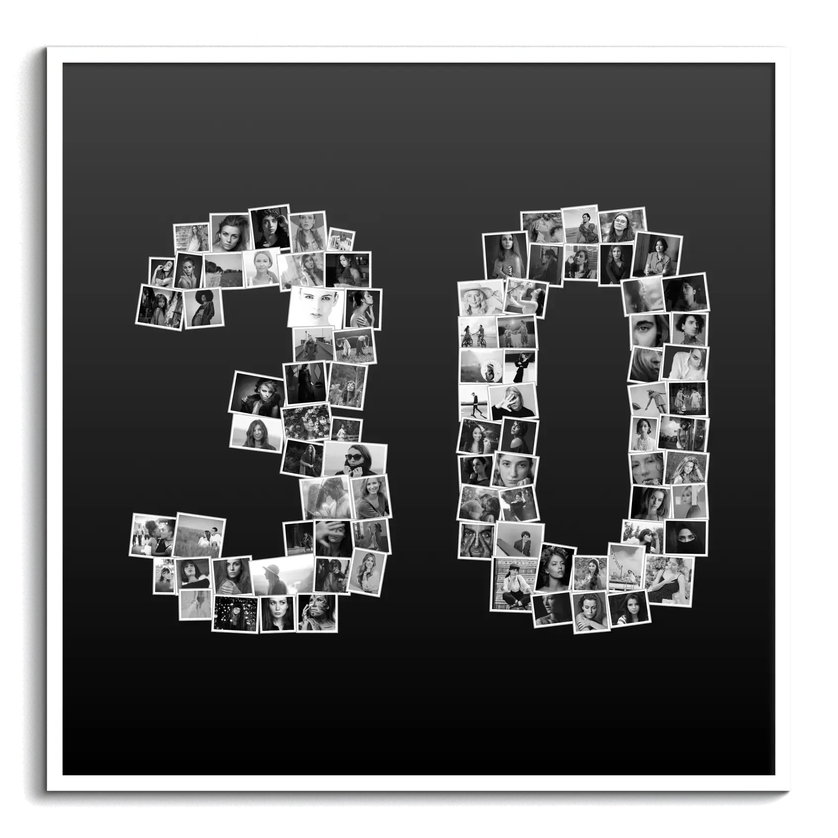 Fotocollage Zahl "30" erstellen. Geburstagsgeschenk, individuell mit 1-100 Bildern
