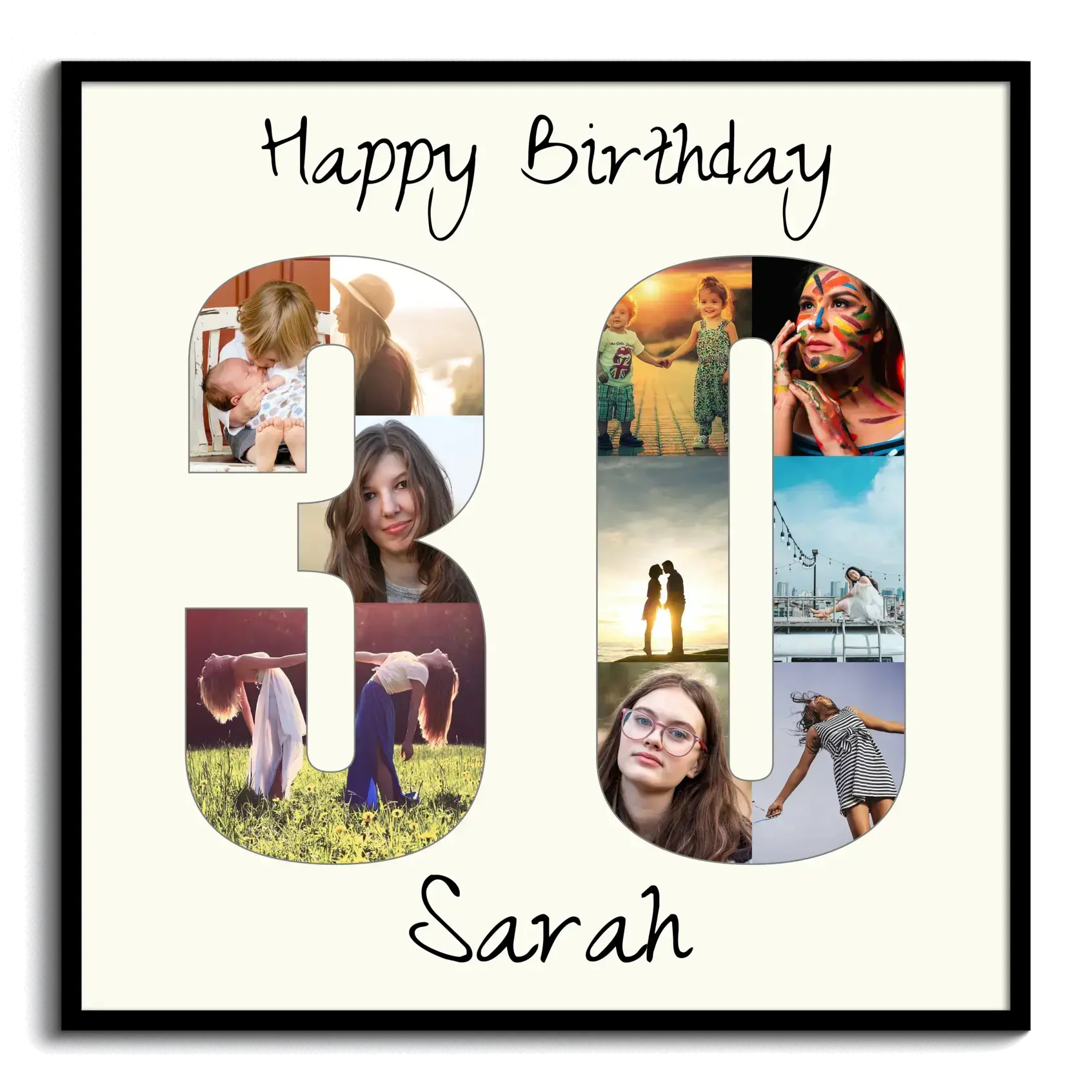 Die '30er' Zahlencollage ist eine ideale Geschenkidee für eine Vielzahl von Anlässen. Besonders für runde Geburtstage, Hochzeitstage oder Jubiläen sind sie ein Highlight. Verewige die Schönheit deiner Momente in einer einzigartigen Collage und schenke etwas, das wirklich von Herzen kommt.