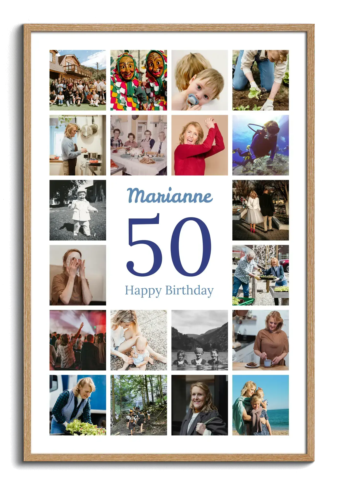 Zahlen-Collage zum 50. Geburtstag: große 50, Name, Gruß, 20–80 Fotos – individuell anpassbar