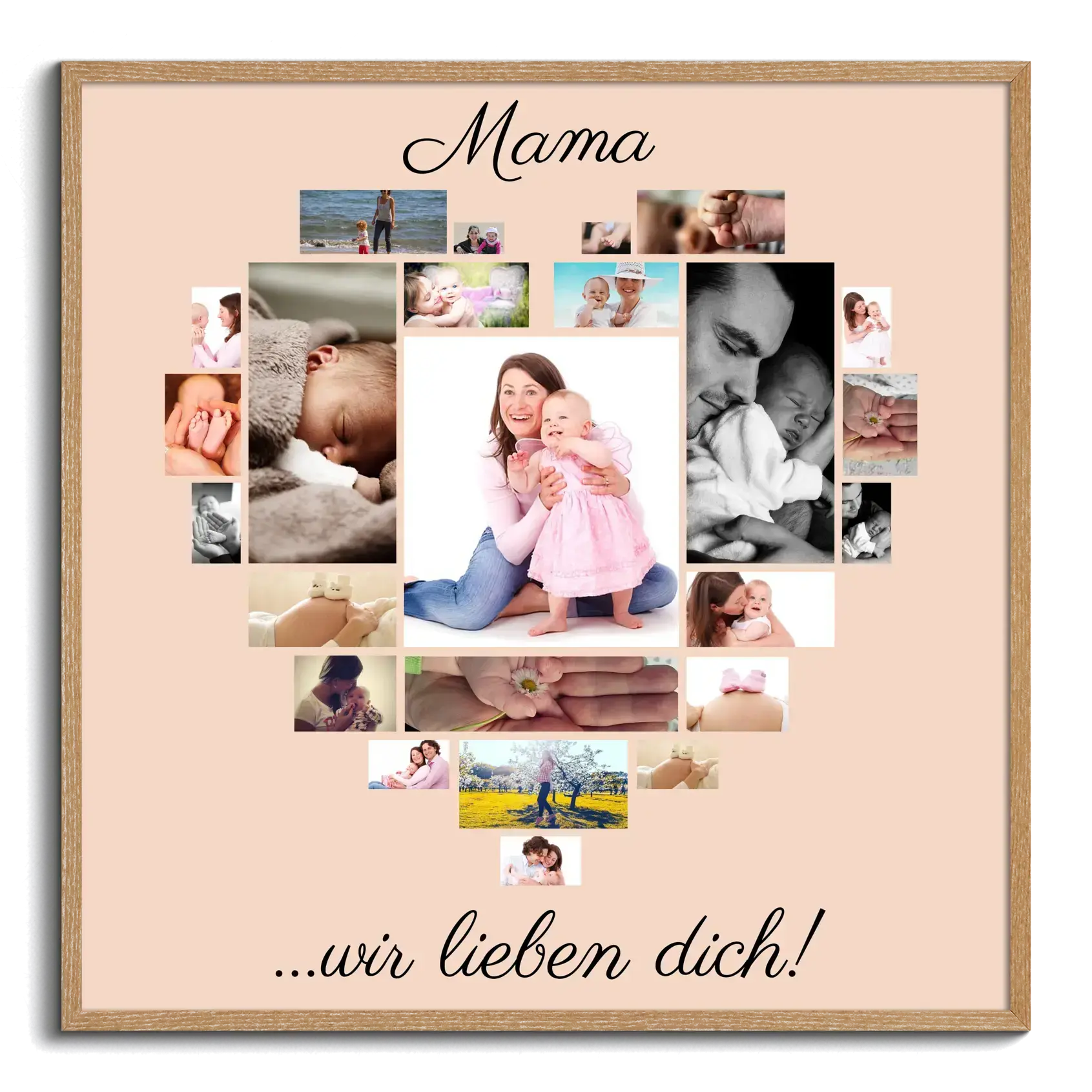 Einzigartiges Geschenk für Mama: Herz-Collage mit personalisierbaren Liebesbotschaften.