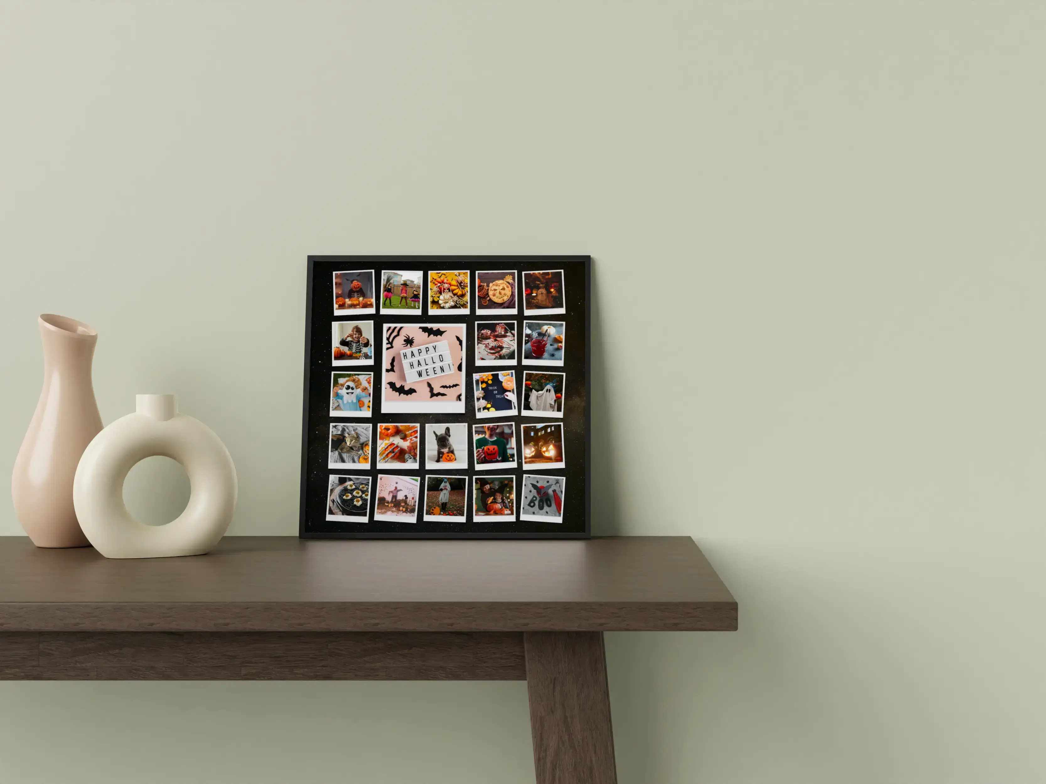 Gestalte deine persönliche Halloween-Fotocollage mit nur wenigen Klicks! Sammle zauberhafte Momente deiner Familie und Freunde, die in schaurigen Kostümen für unvergessliche Erinnerungen sorgen. Verleihe deiner Collage eine persönliche Note mit witzigen oder gruseligen Texten, wie zum Beispiel Süßes oder Saures. Deine Collage wird zum Blickfang in jedem Raum und sorgt garantiert für gute Laune.
