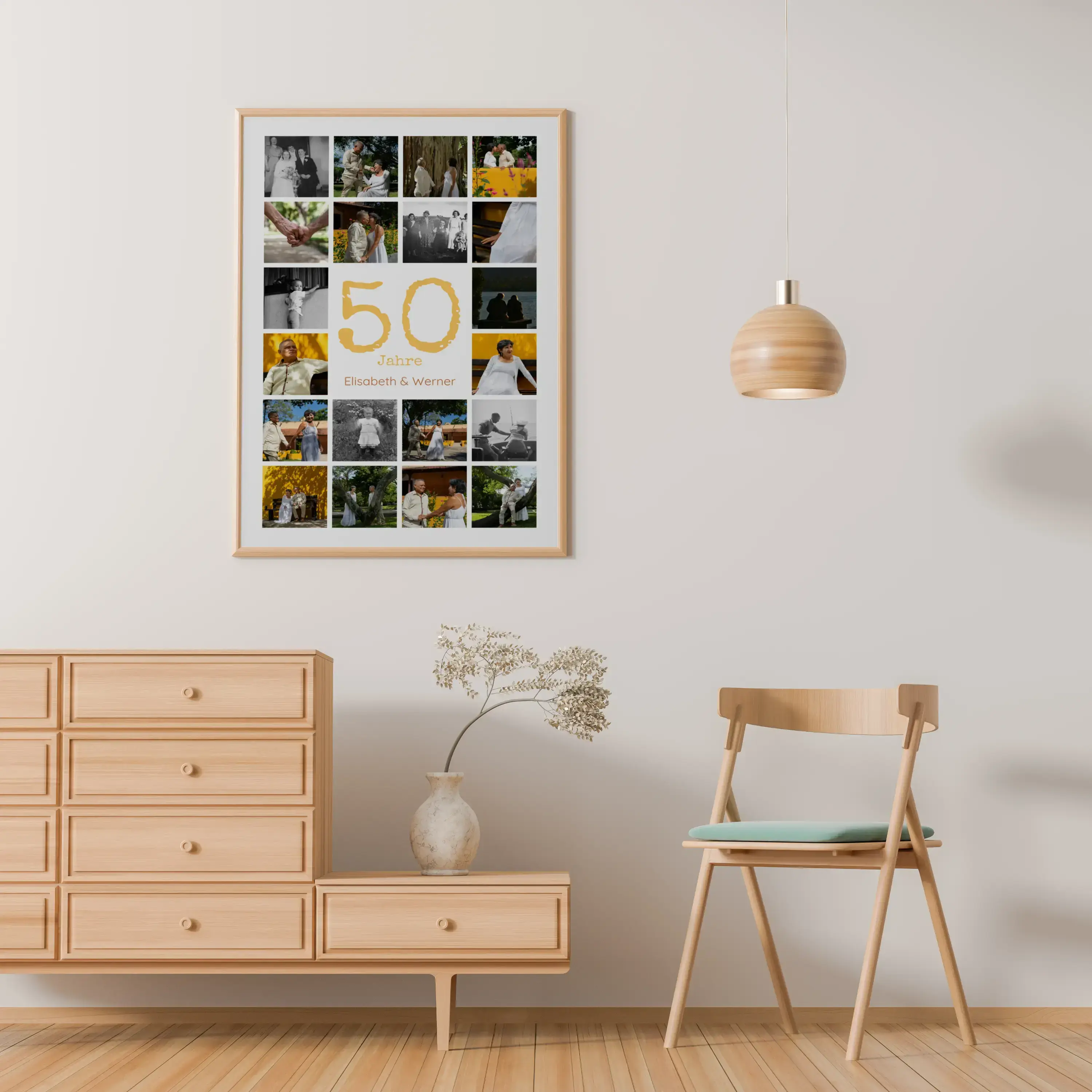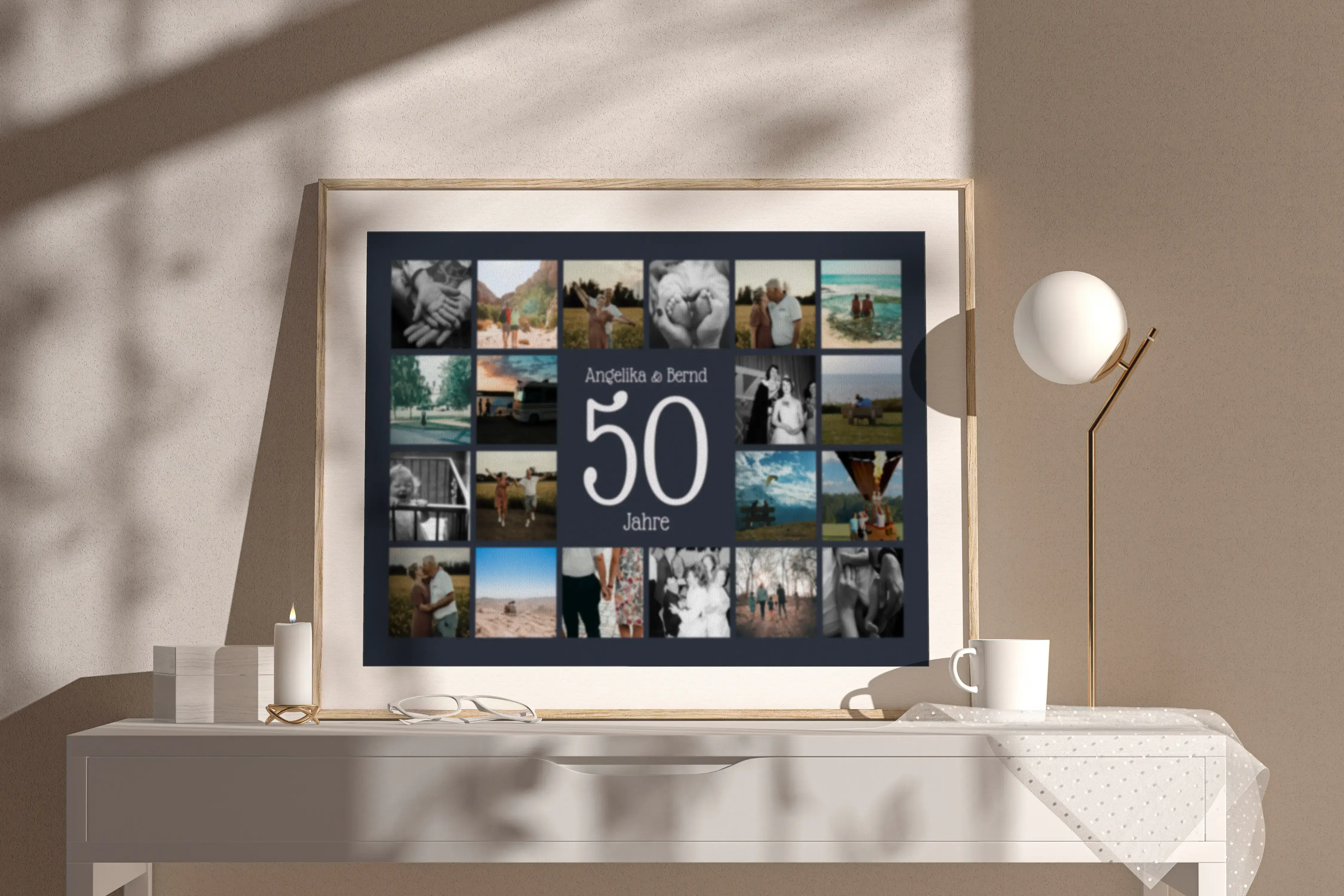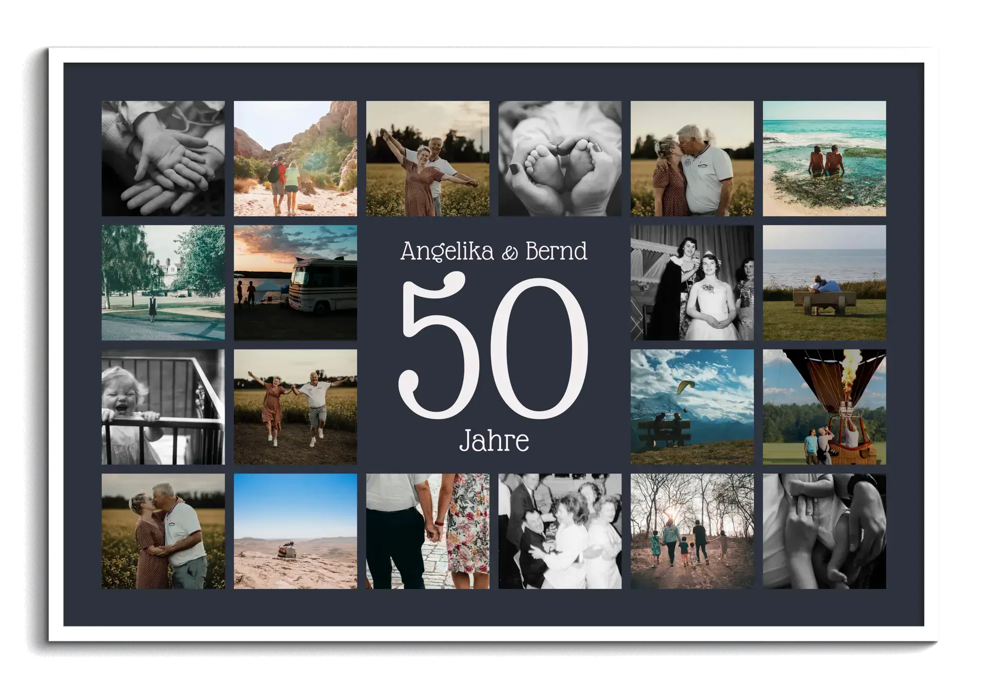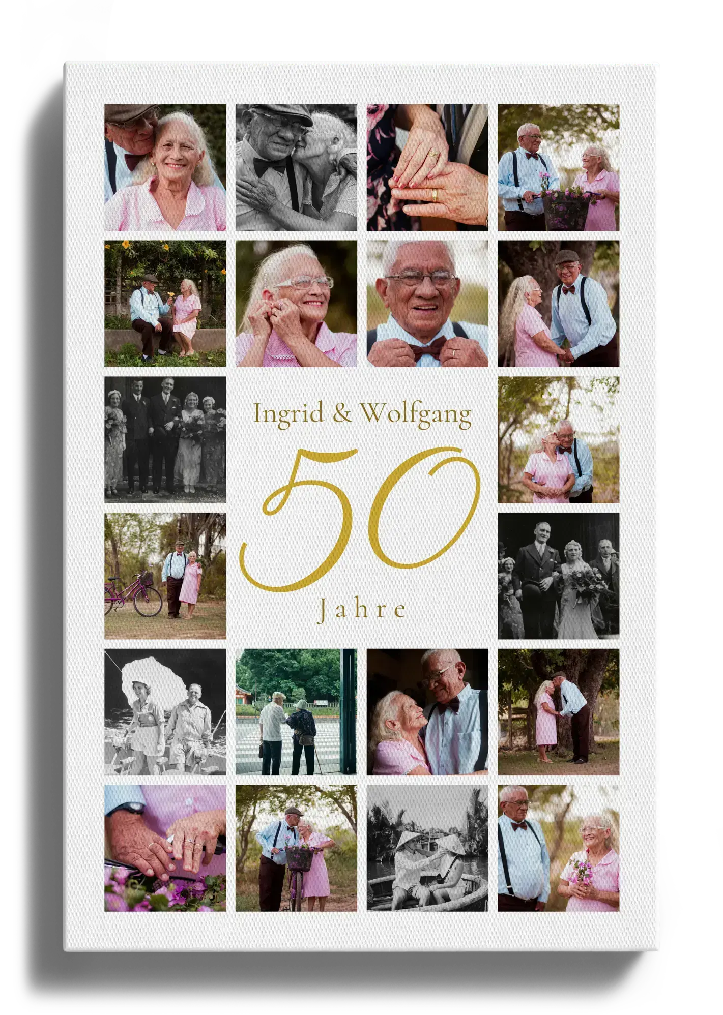 Goldene Hochzeit als Jubiläums-Zahl-Collage: große Zahl, Namen & Text, 20–80 Fotos, anpassbar