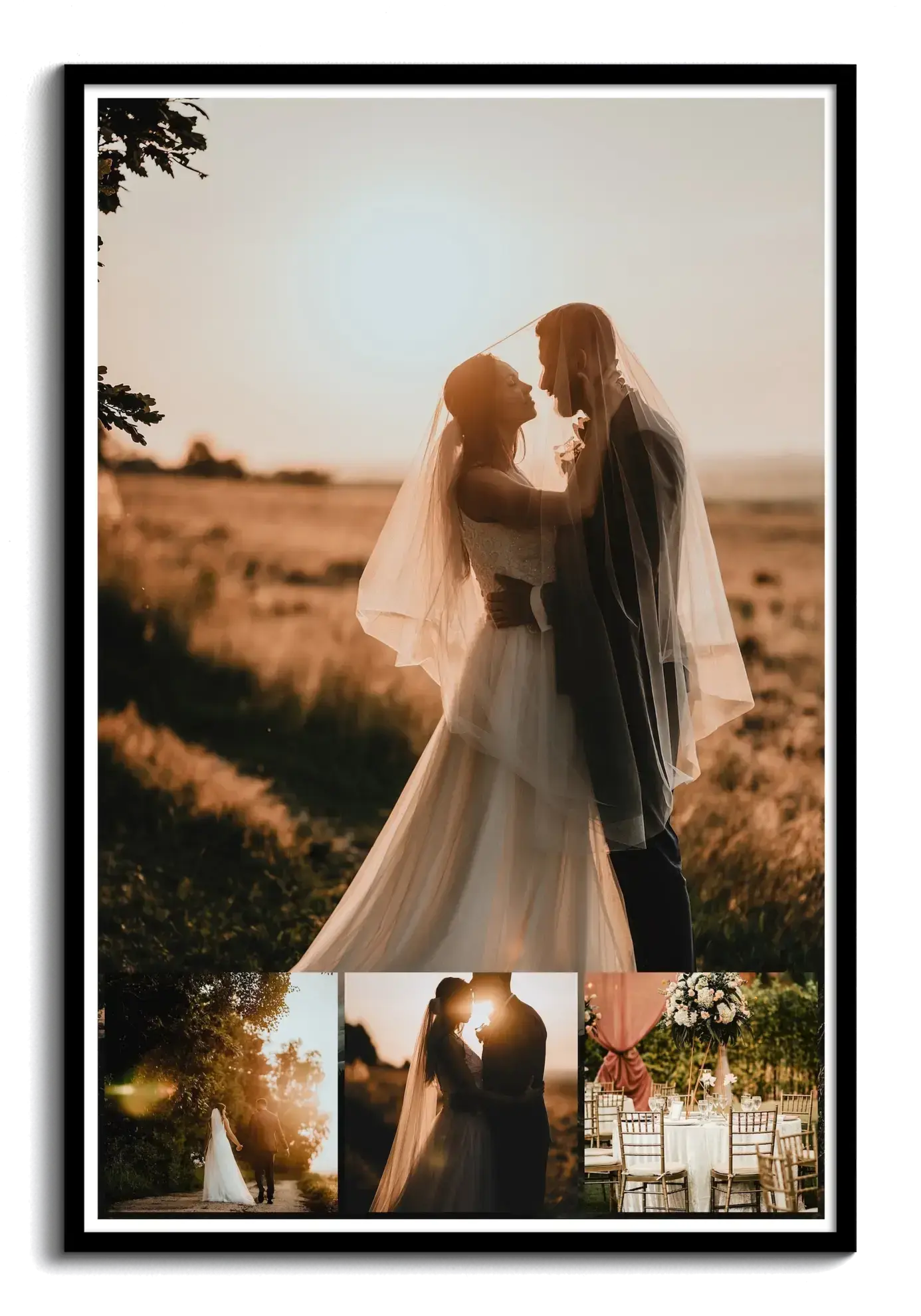 Dein Hochzeitfoto bestellen. Personalisierte Hochzeitscollage mit einzigartigem Design.