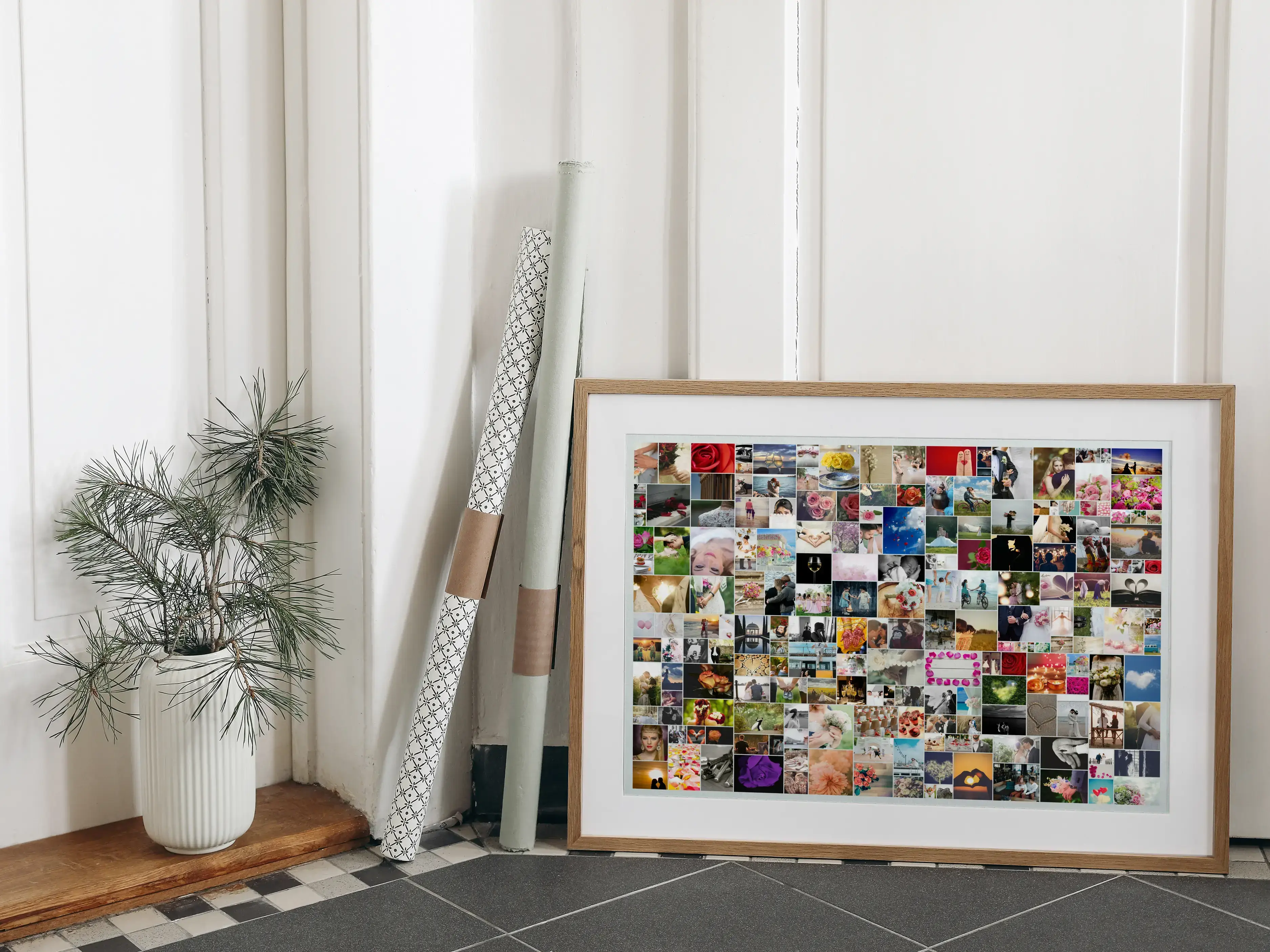 Unsere Fotocollagen werden auf hochwertigen Materialien gedruckt, um sicherzustellen, dass jedes Detail deines Meisterwerks zur Geltung kommt. Ob Poster mit seidenmatter Oberfläche, gerahmtes Bild in verschiedenen Holzrahmen, hochwertige Leinwand, robustes Alu-Dibond oder elegantes Acrylglas - wir garantieren exzellente Druckqualität.