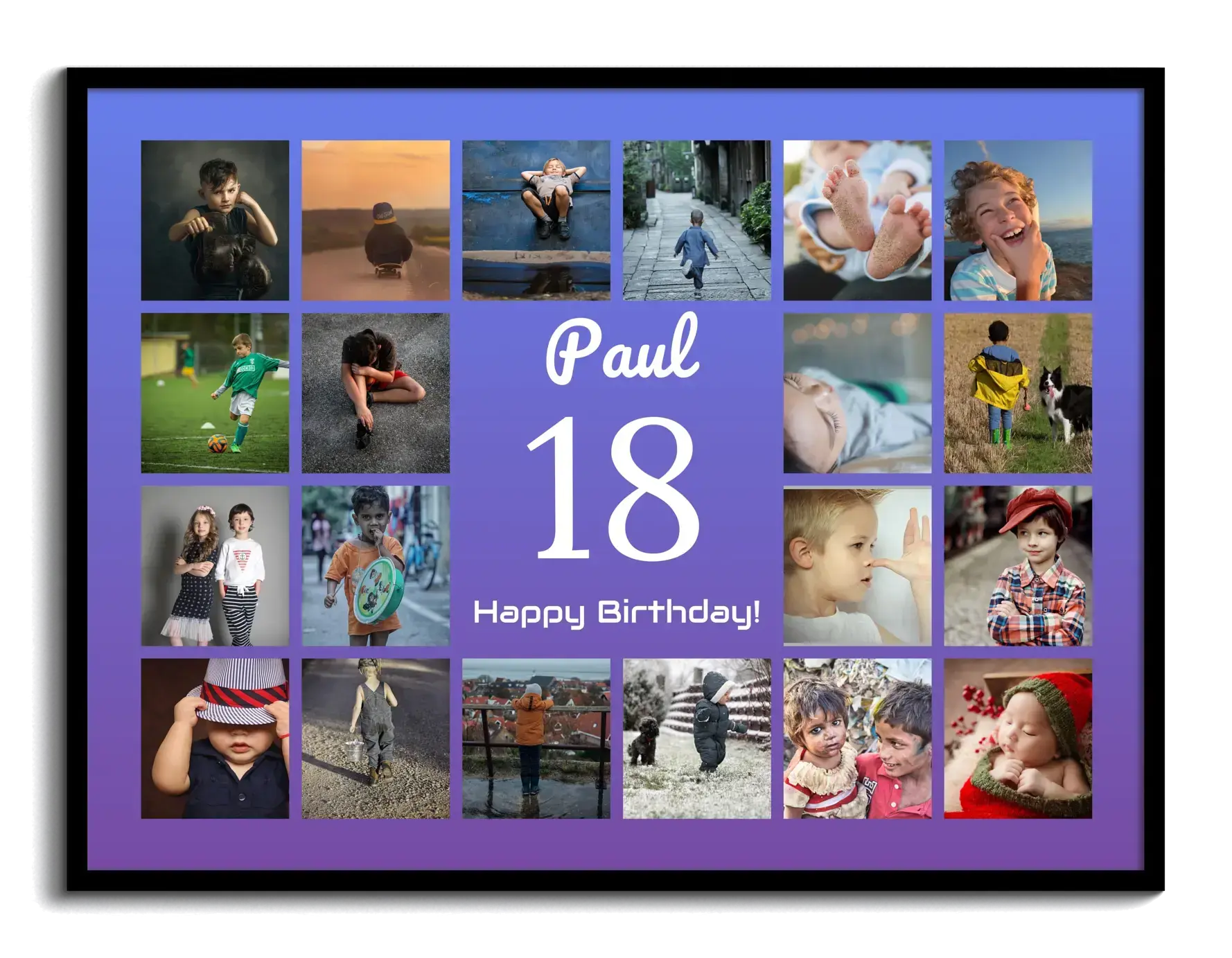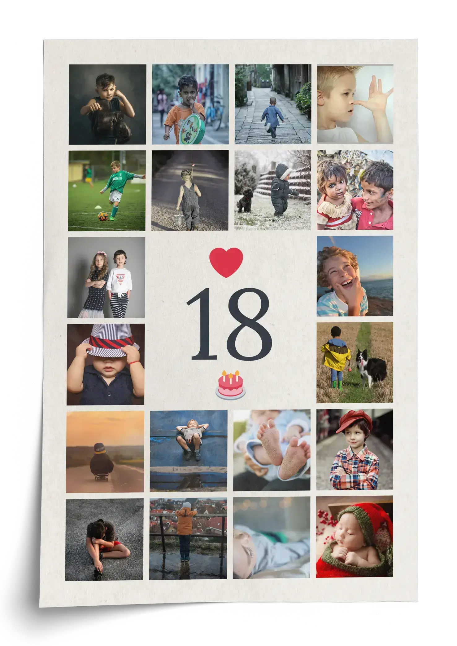 Fotocollage Zahl 18 – 20–80 Fotos für 18. Geburtstag & Volljährigkeit – jetzt gestalten