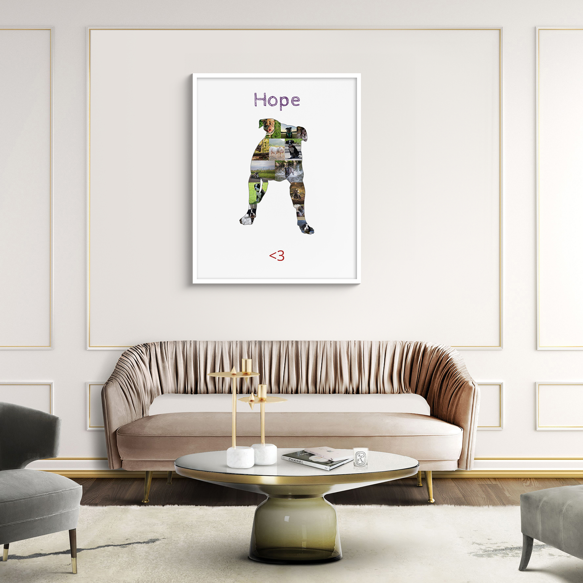 Eine personalisierte Fotocollage ist eine großartige Möglichkeit, besondere Momente oder Lebensabschnitte deines geliebten Vierbeiners festzuhalten. Es ist auch ein wunderbares Geschenk für Geburtstage, Jahrestage oder für dich selbst, um dein eigenes Zuhause zu verschönern. Jedes Mal, wenn du oder deine Besucher einen Blick auf dieses Kunstwerk werfen, werdet ihr an die wundervollen Zeiten erinnert, die du mit deinem American Bully verbracht hast.
