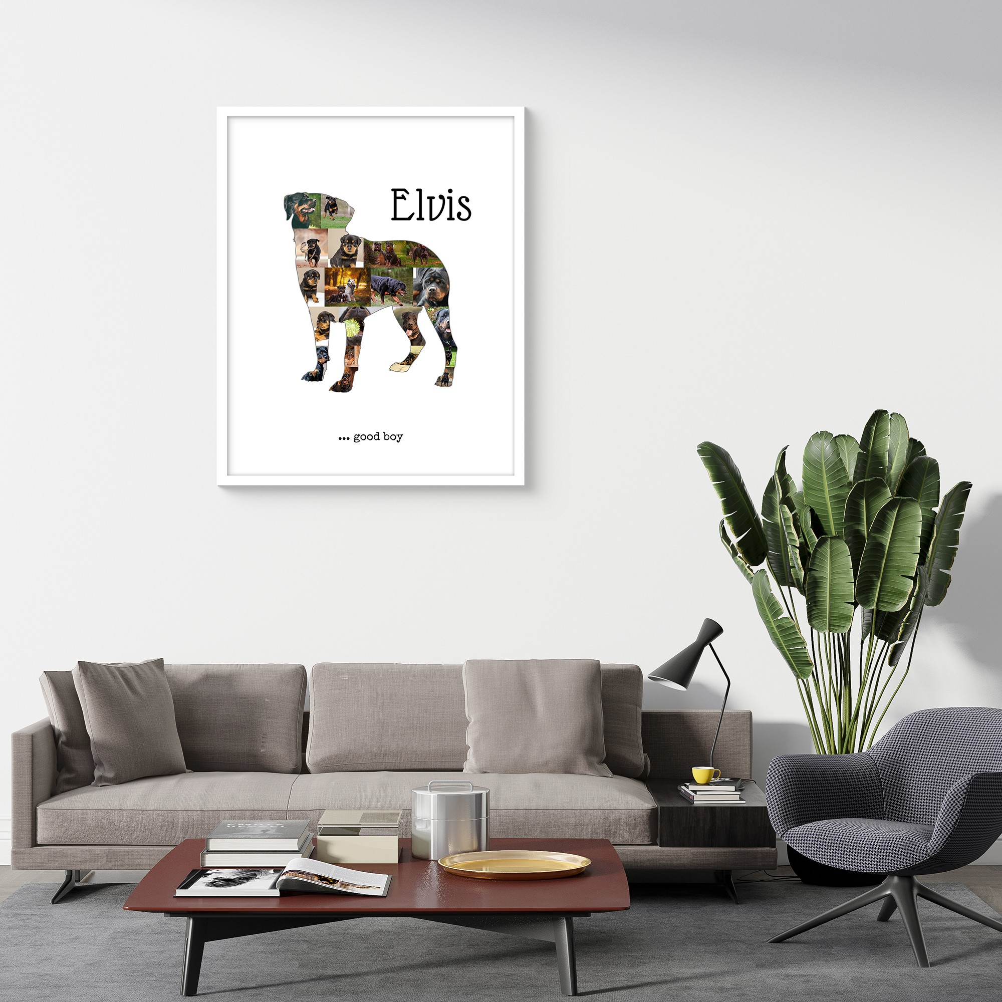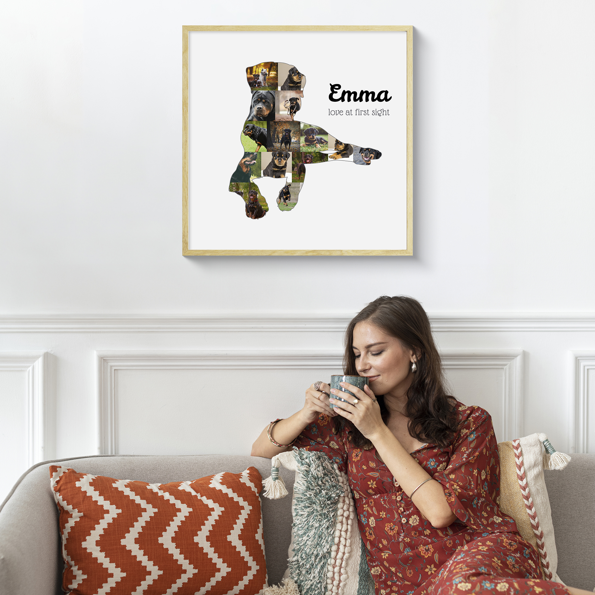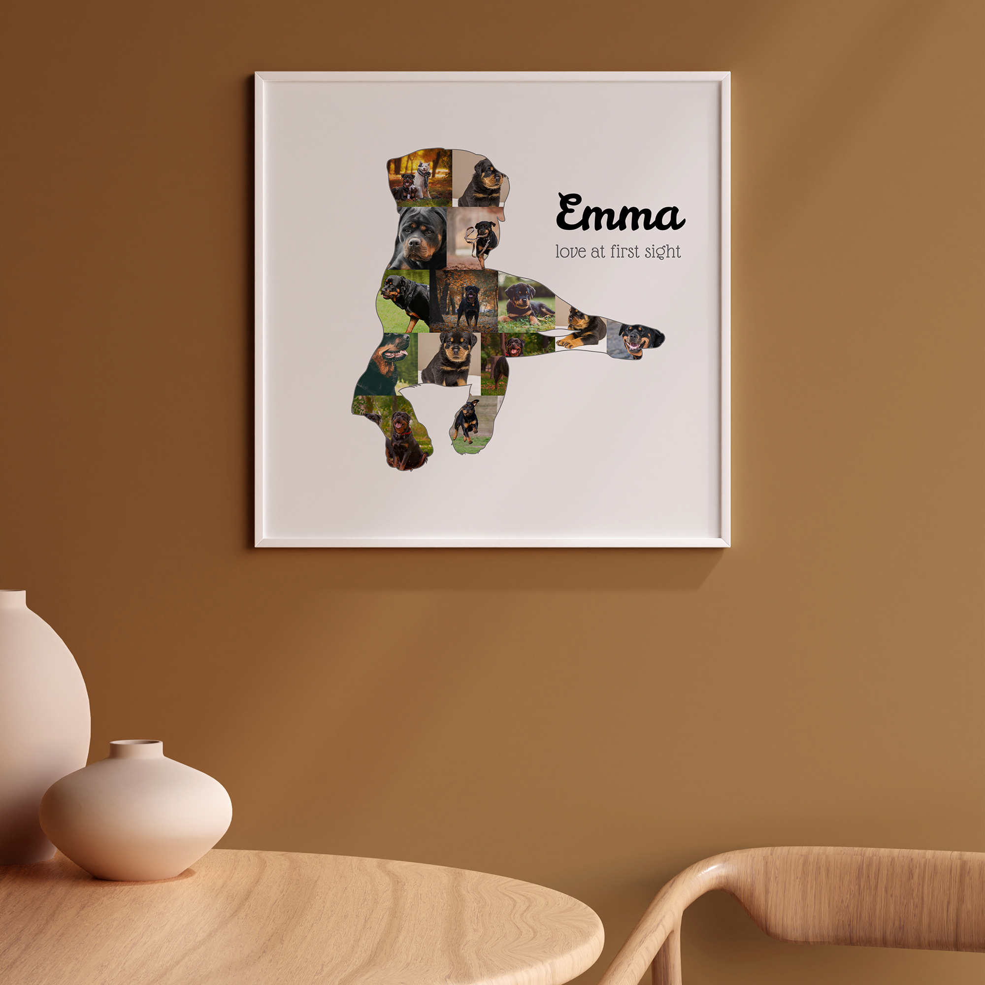 Die Erstellung deiner Fotocollage ist ein einfach gestalteter Prozess. Wähle zunächst die Silhouette deines Rottweilers aus, bevor du deine Lieblingsfotos hochlädst. Durch intuitive Funktionen ist es dir dann möglich, die Bilder anzuordnen und deinen individuellen Text hinzuzufügen. Ohne großen Aufwand kreierst du so ein einzigartiges Kunstwerk.