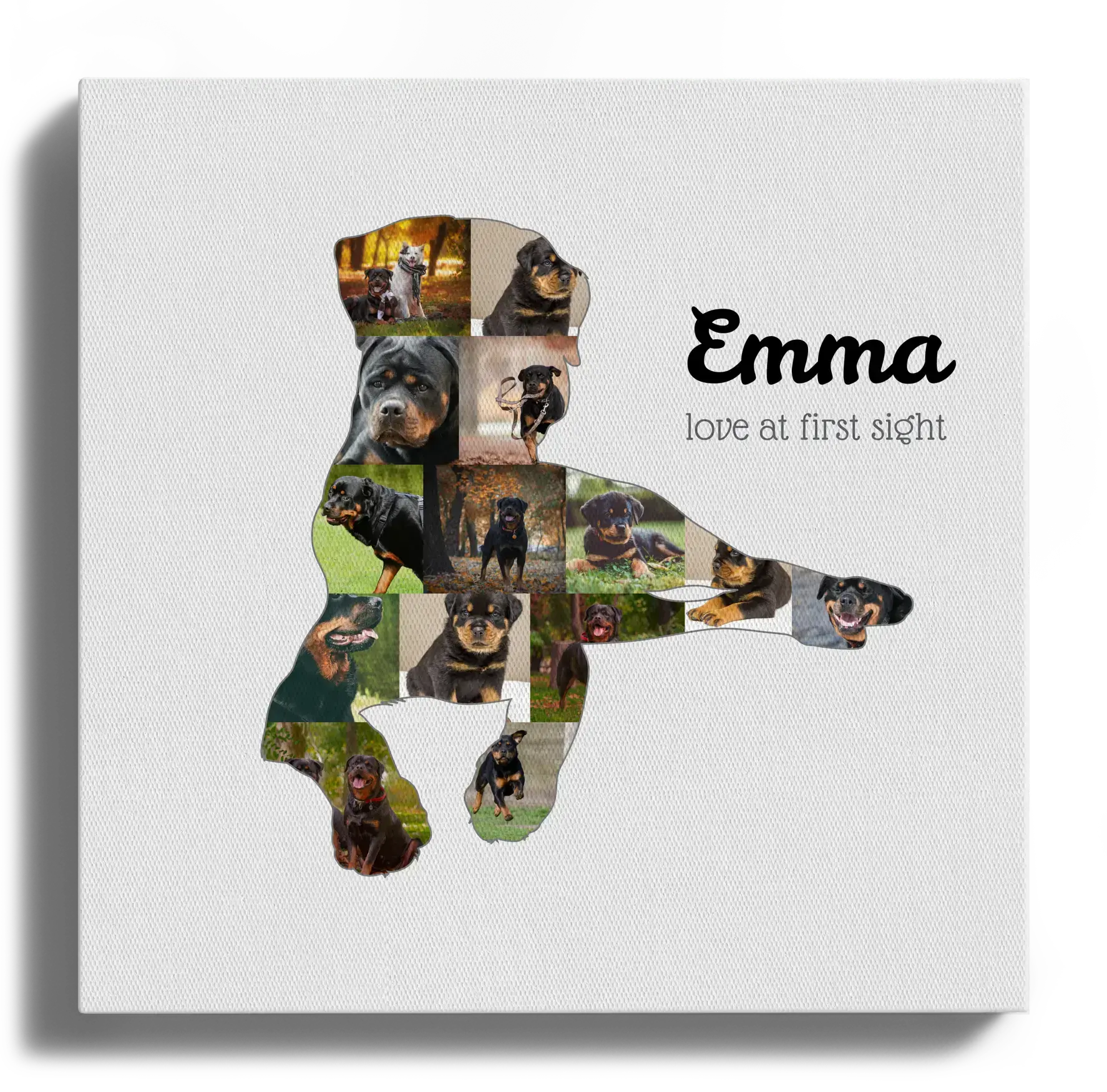 Kreiere jetzt deine individuelle Fotocollage, geprägt von Liebe und Erinnerungen an deinen treuen vierbeinigen Freund, dem Rottweiler. Füge 15-20 deiner liebsten Fotos ein, die die einzigartigen Momente mit deinem Haustier festhalten und verleihe deiner Collage eine persönliche Note durch individuellen Text.