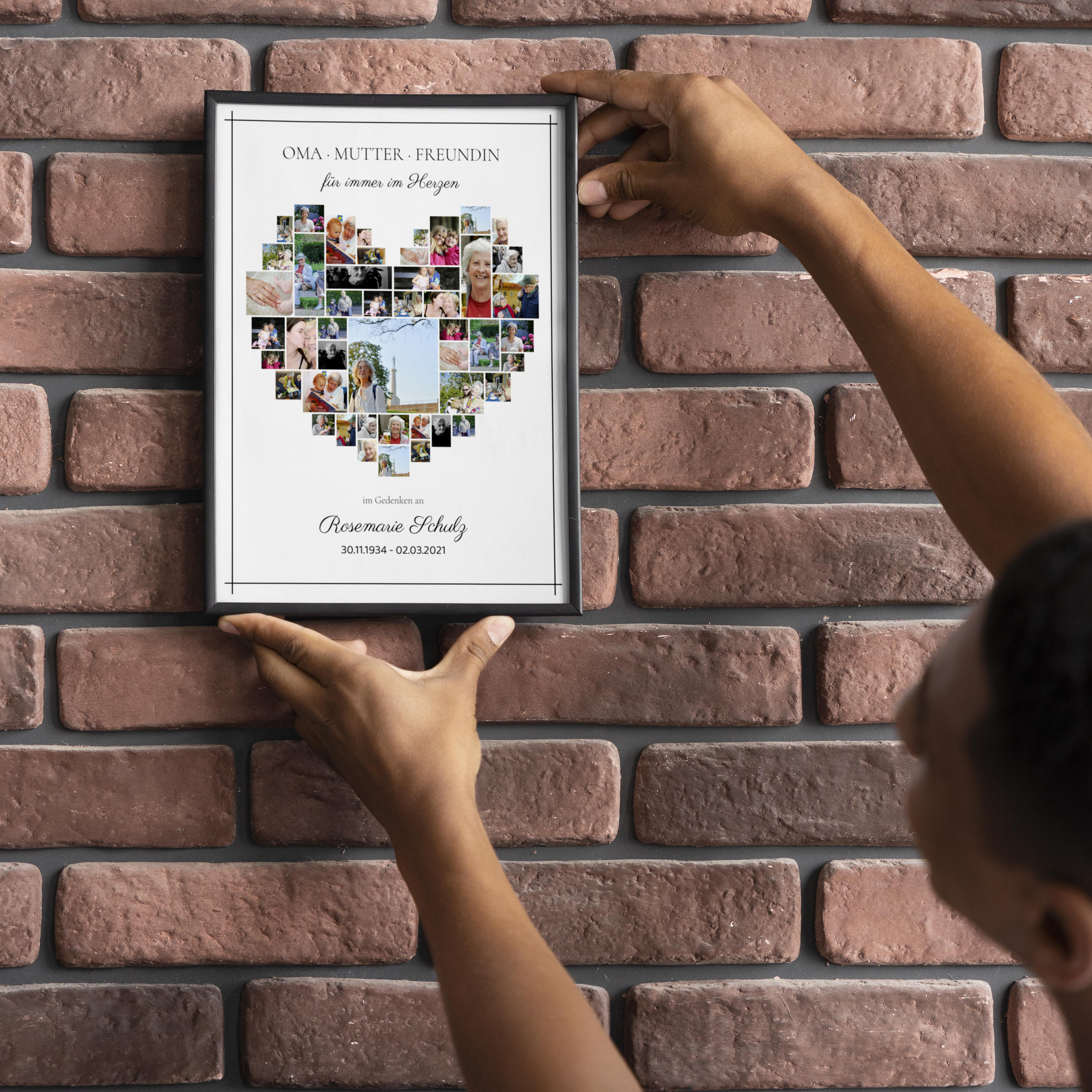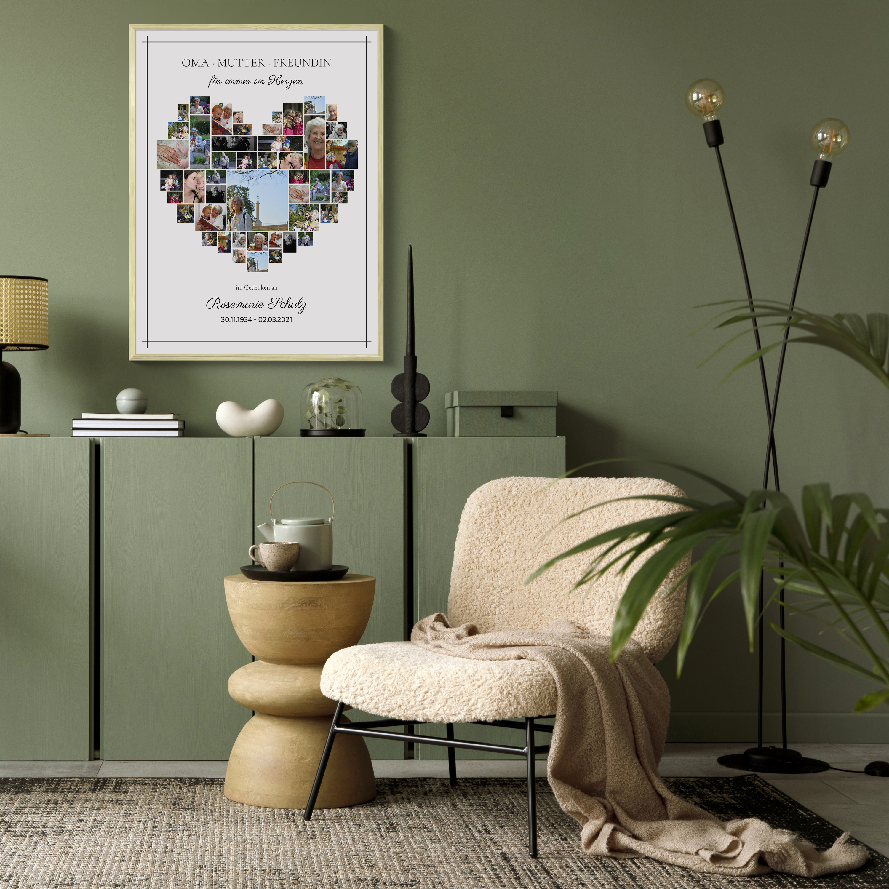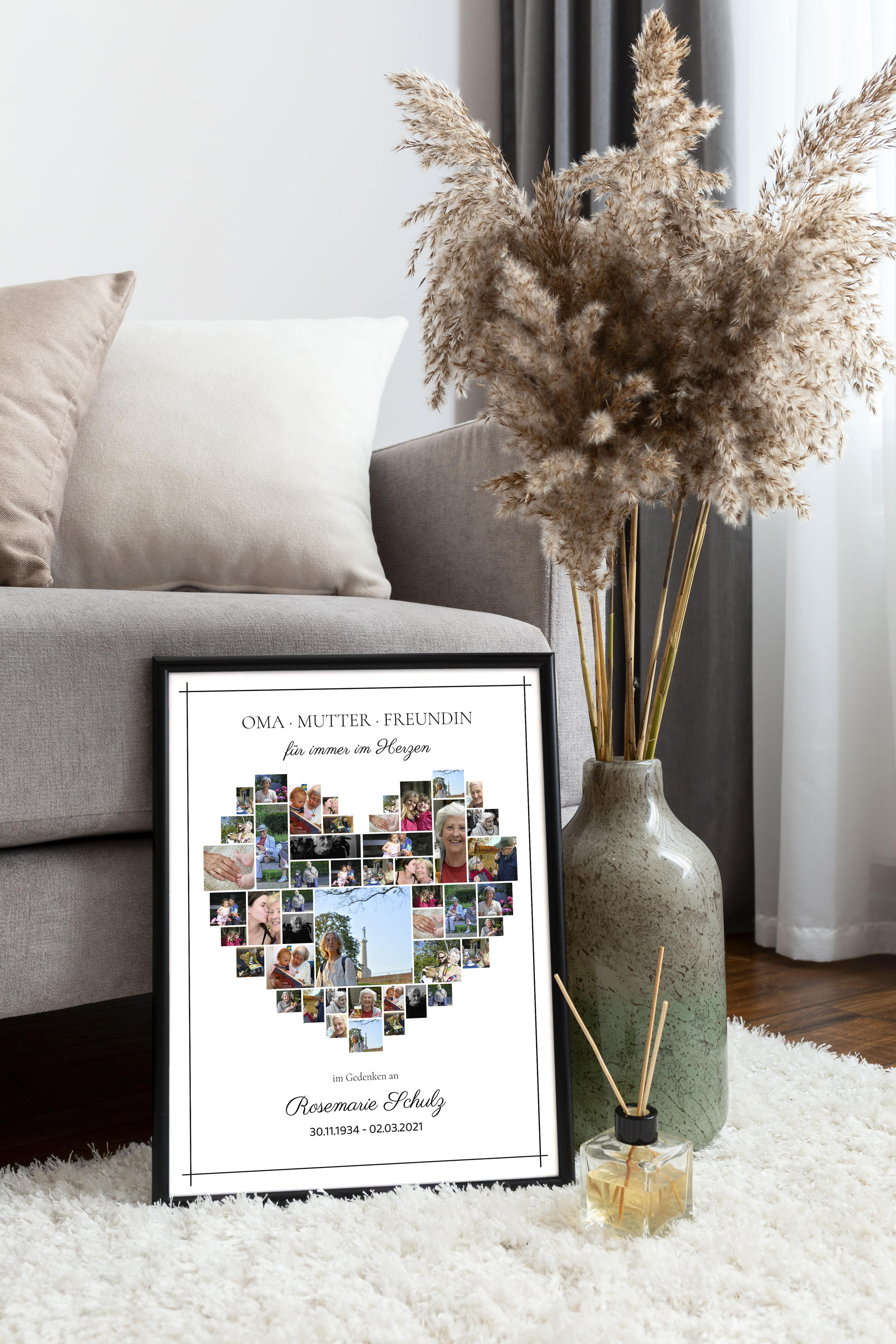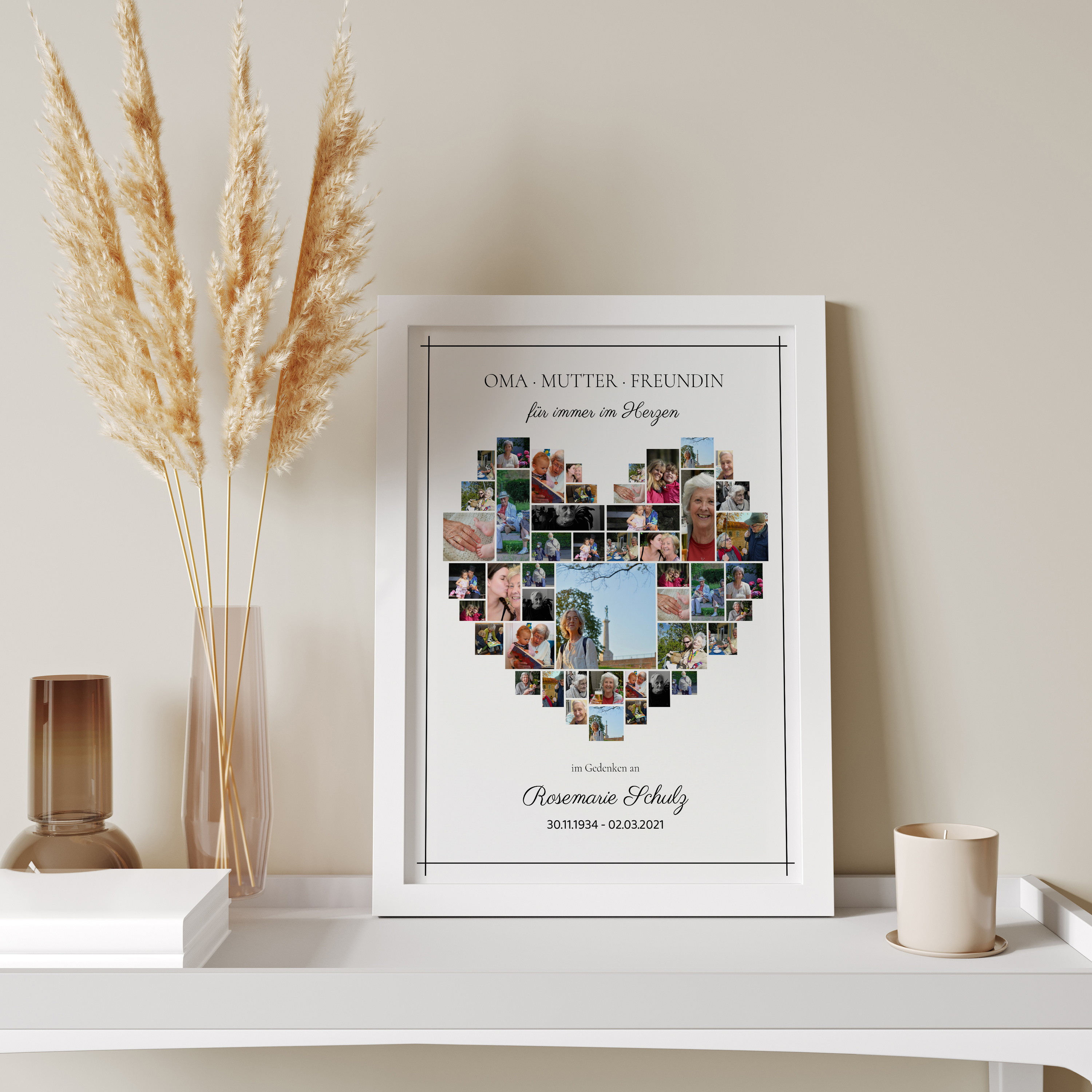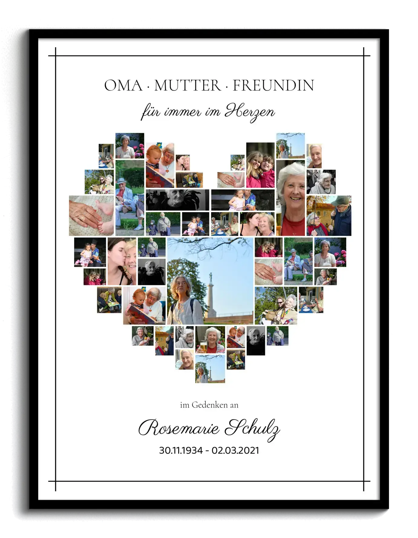 Fotocollage "Für immer im Herzen" - Individuelle Erinnerungen liebevoll in Herzform gestaltet.