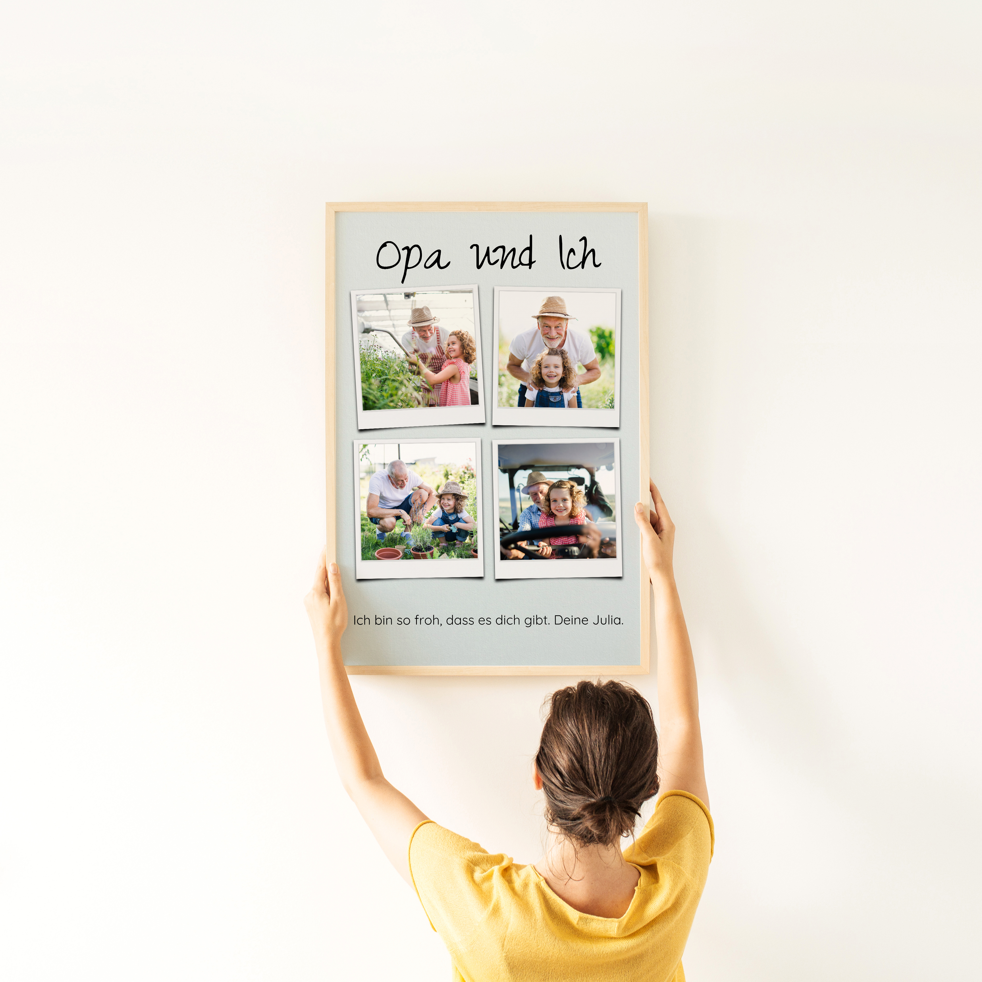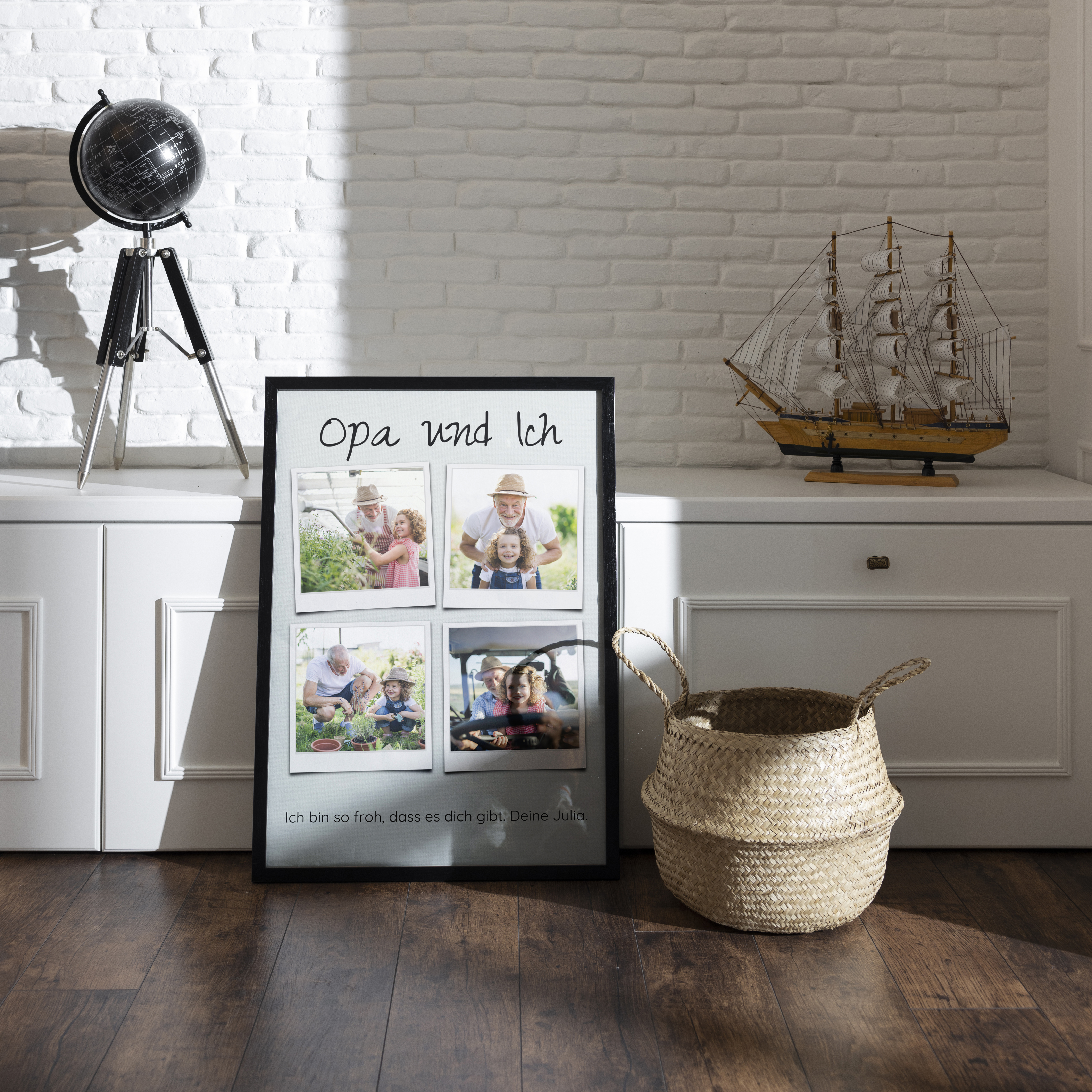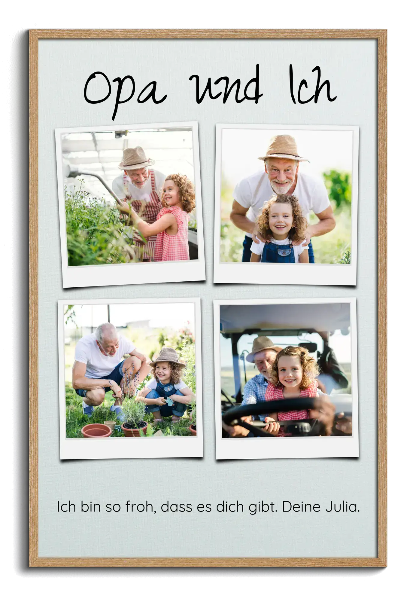 Fotocollage Polaroid-Stil für Opa – gestalte jetzt deine 4 Fotos + Spruch personalisiert