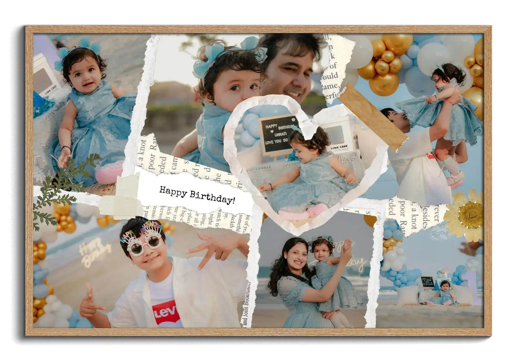 Geburtstagsfotocollage mit zentralem Familienbild