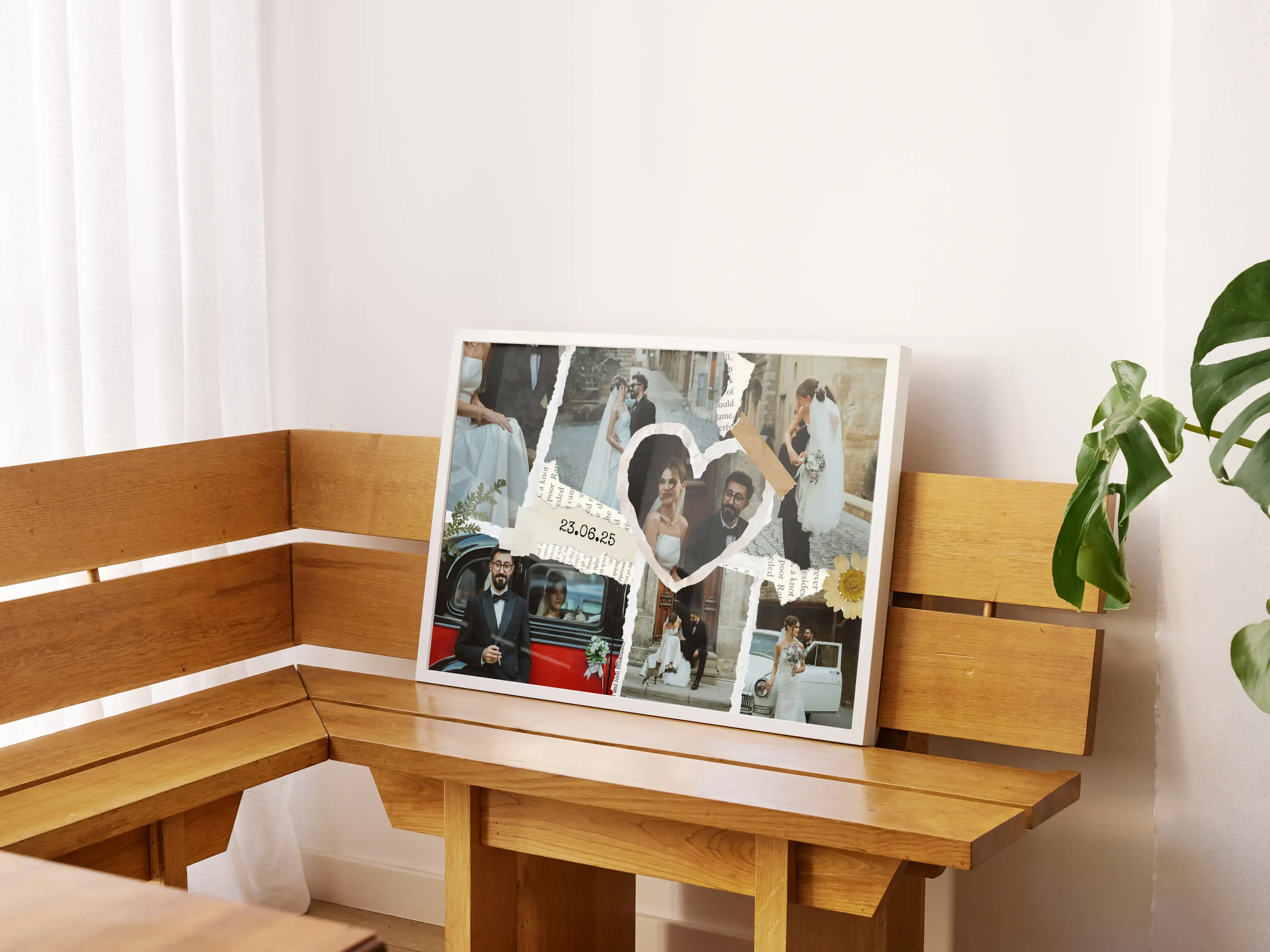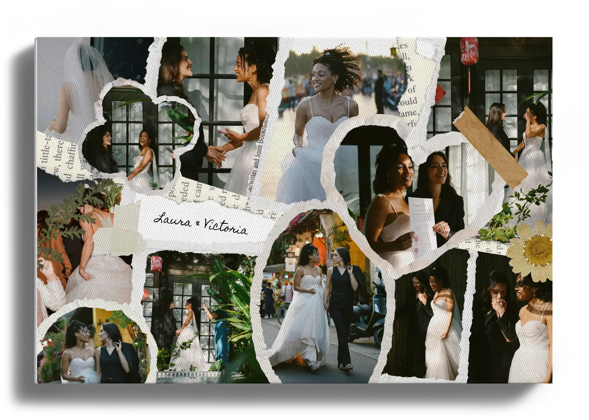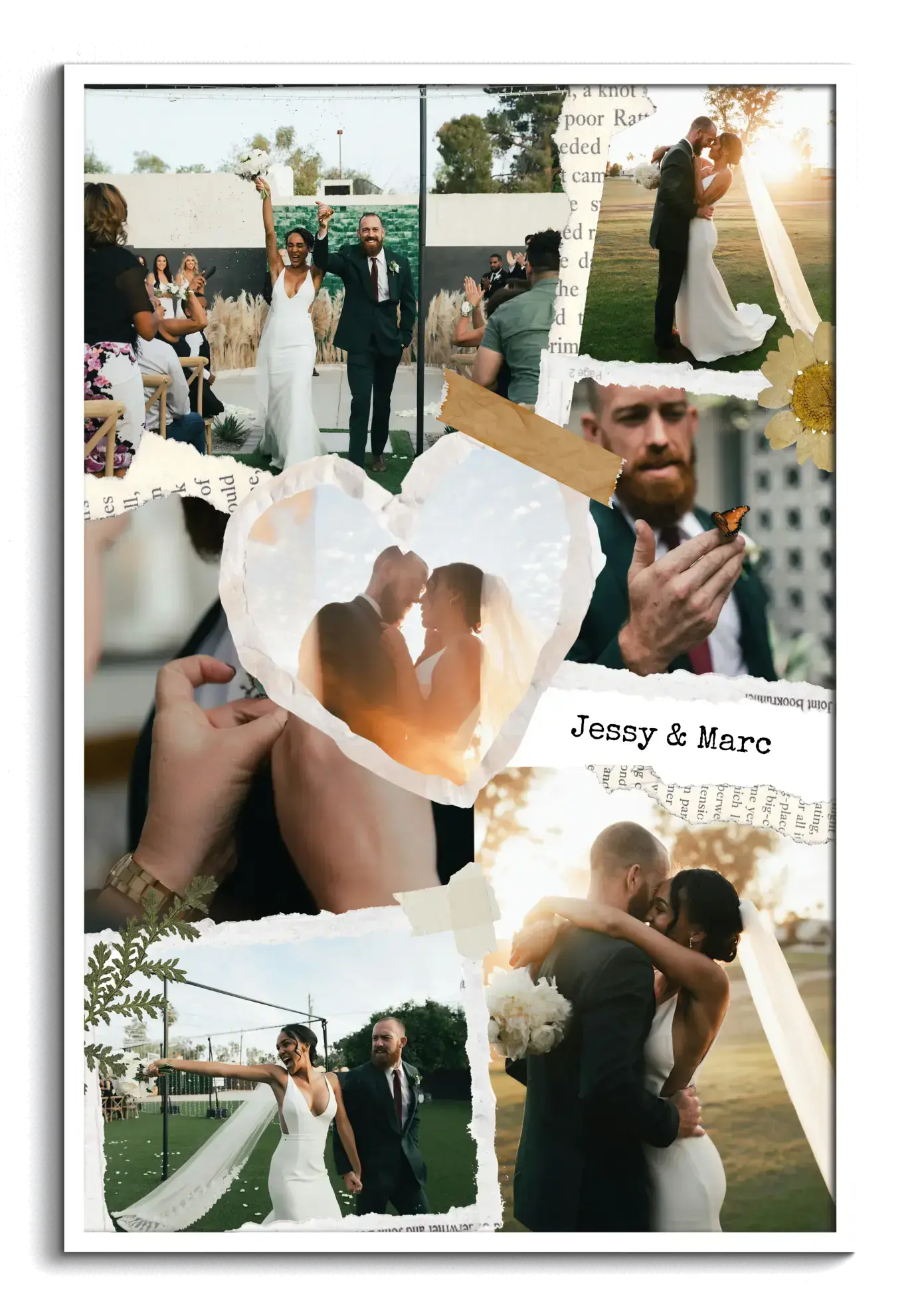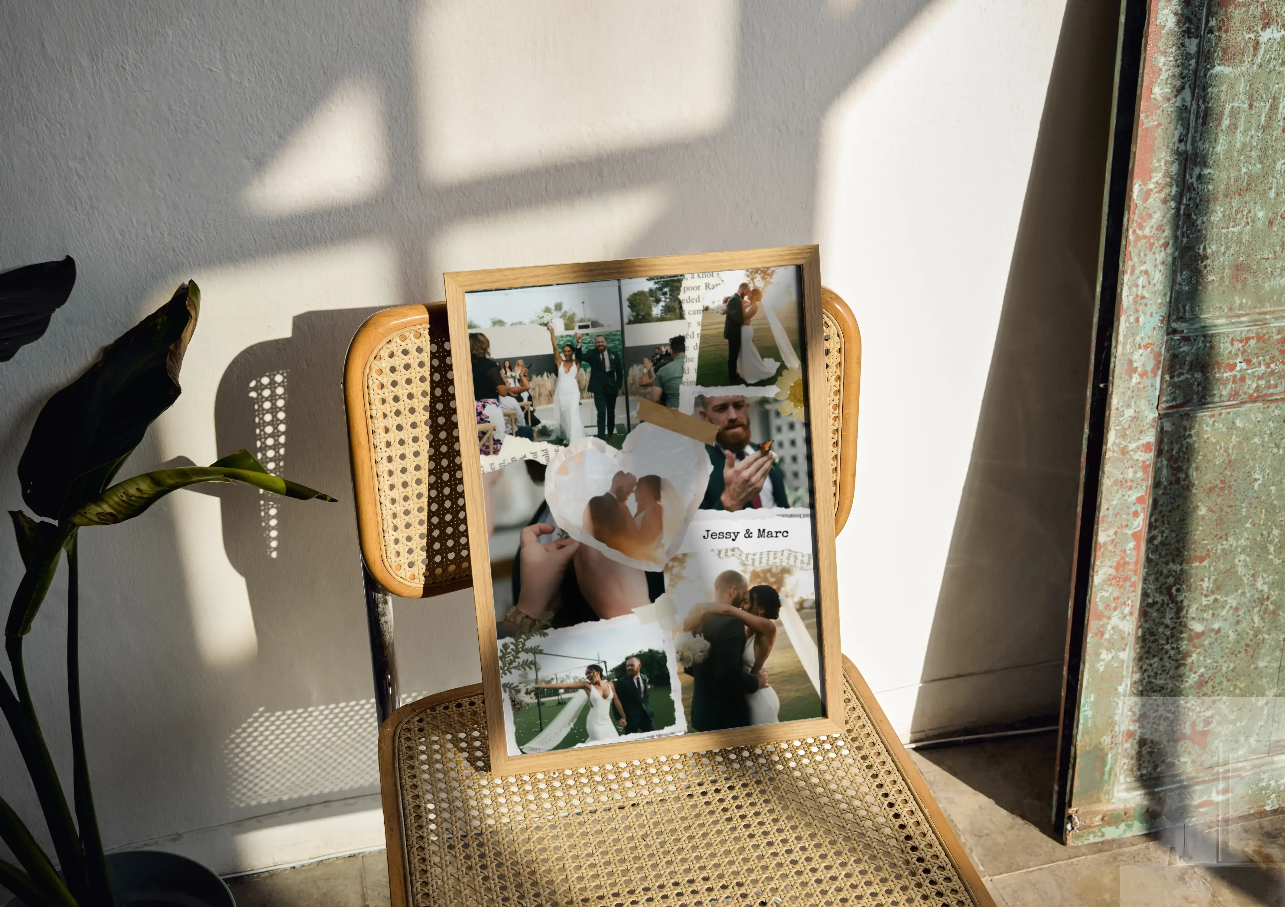 Erstelle deine Hochzeits-Collage im Scrapbook-Stil mit Namen und Datum