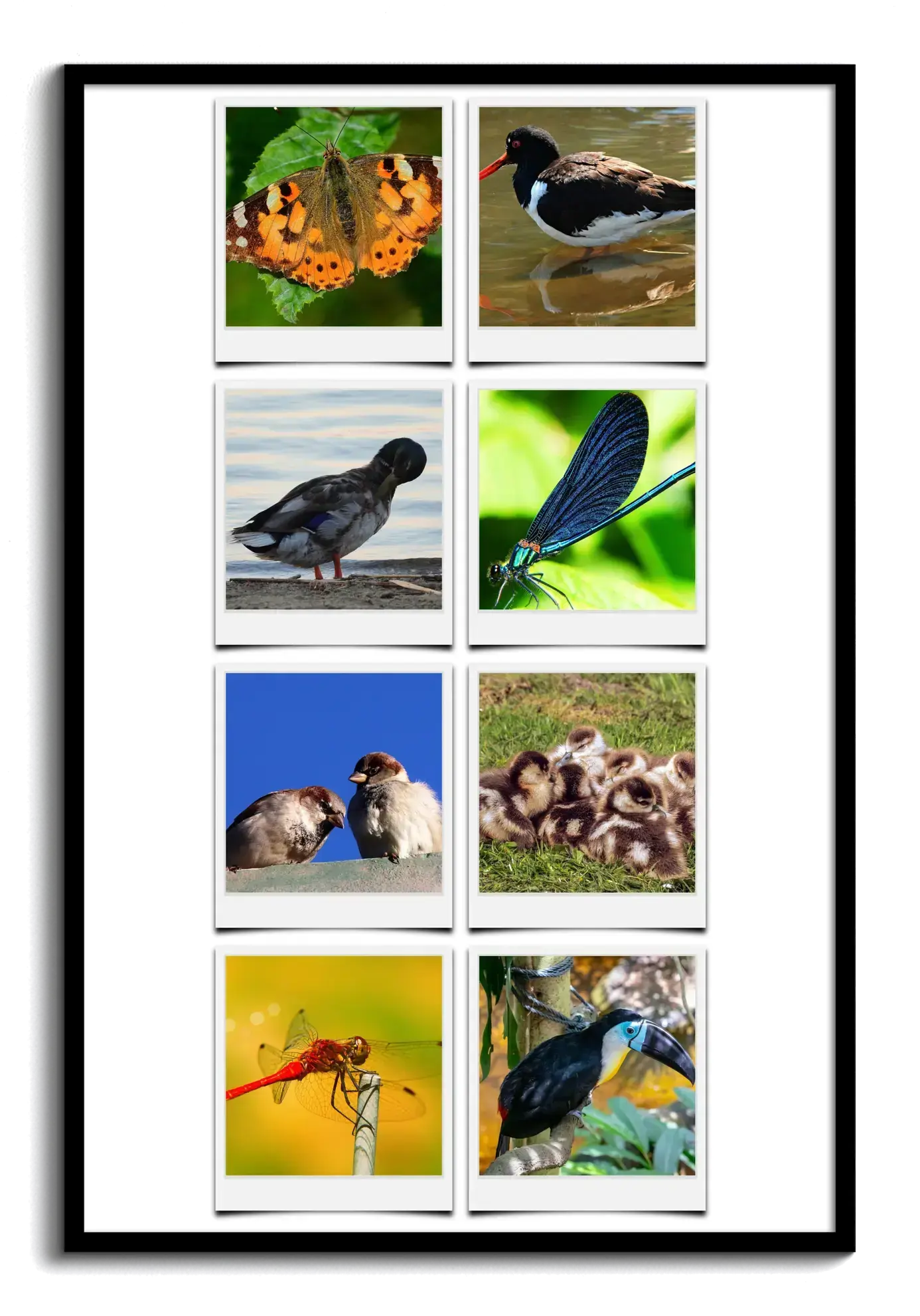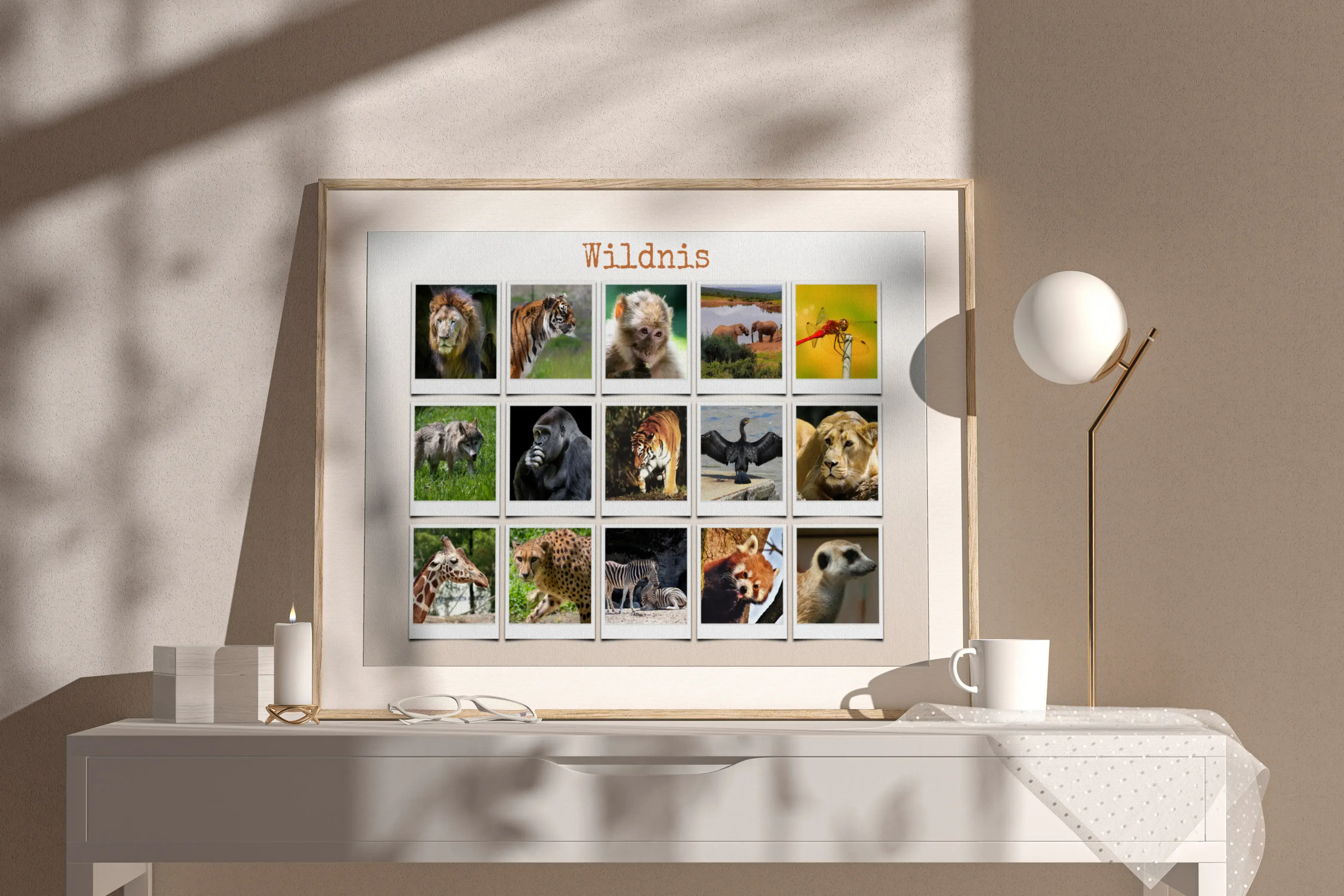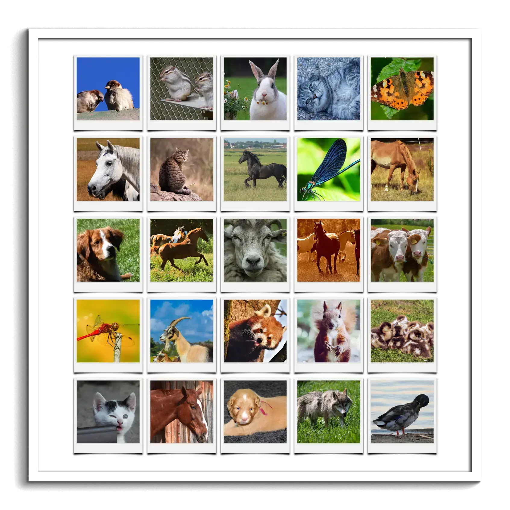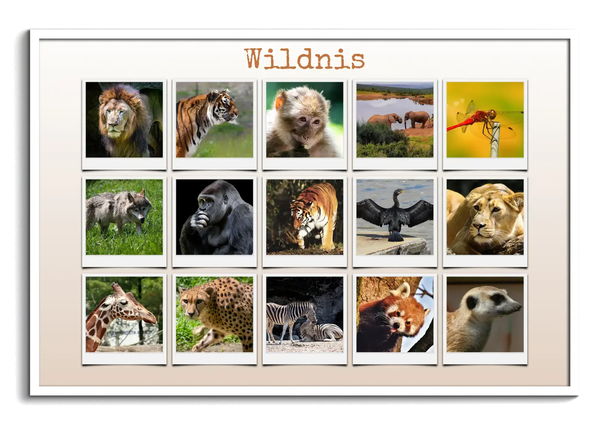 Erleben Sie die Vielfalt der Wildnis in einer einzigartigen Polaroid-Collage voller Tierbilder.
