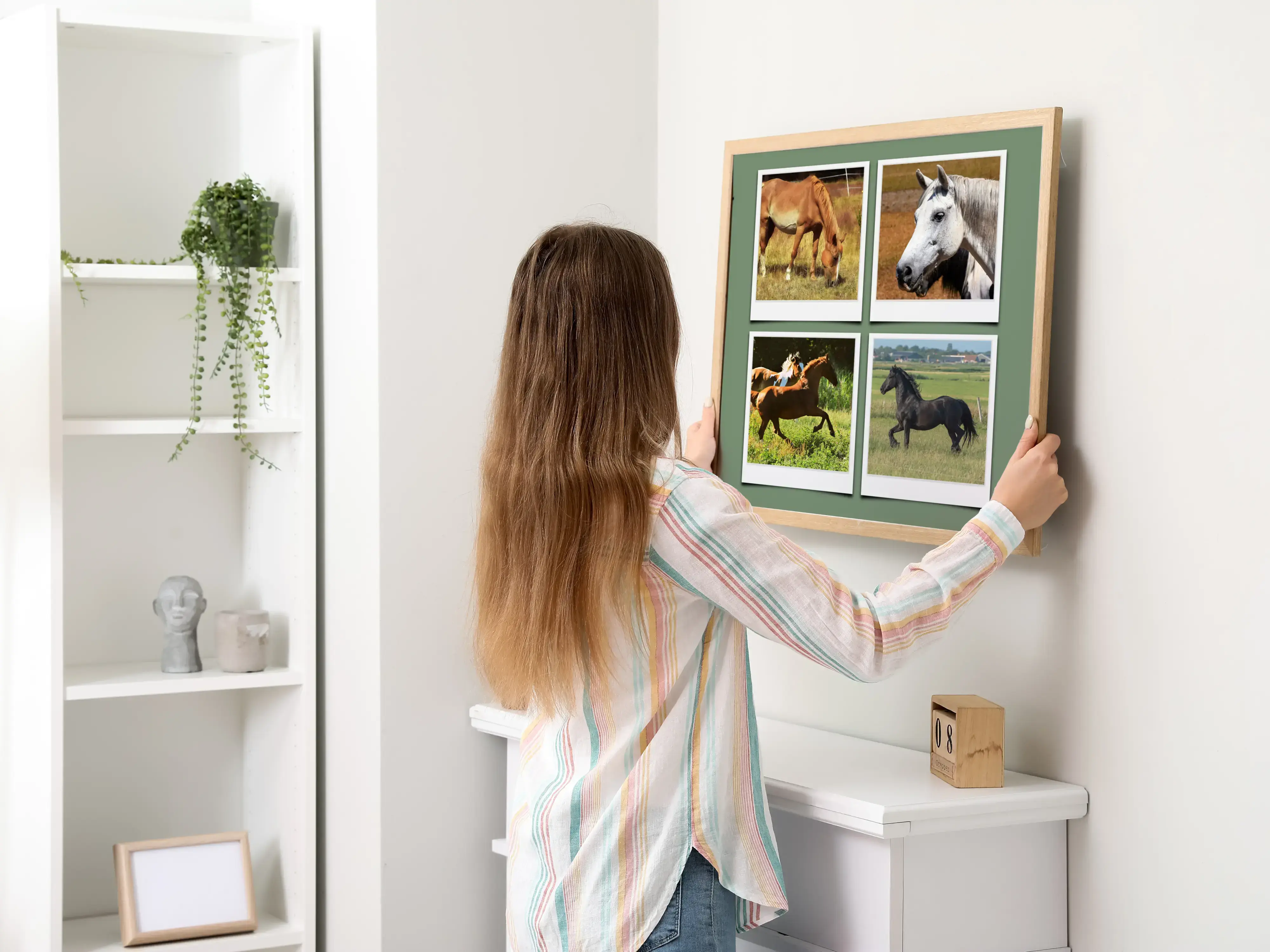 Erstelle deine eigene personalisierte Fotocollage und halte unvergessliche Momente fest. Stell dir vor, du arrangierst beeindruckende Tierbilder aus der Wildnis, von majestätischen Löwen auf Safari bis hin zu eleganten Pferden, fliegenden Vögeln oder neugierigen Katzen. Verbinde sie alle in einer charmanten Polaroid-Collage mit einem einzigartigen Text wie Wildnis, um deinem Werk das besondere Etwas zu verleihen.