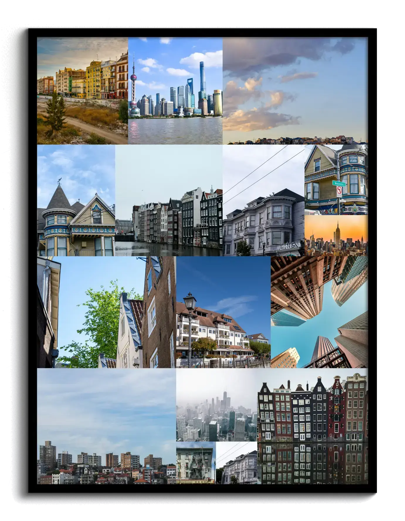 Jetzt gestalten und bestellen. Urlaubsfotos werden zum Wandschmuck: Städte und Sehenswürdigkeiten aus verschiedenen Ländern in modernen Collage-Vorlagen, von Raster bis Herz. Kombiniere Motive aus Rom, Paris, New York oder Tokio und ergänze individuelle Texte wie Meine Lieblingsstadt oder Sommer 2025.